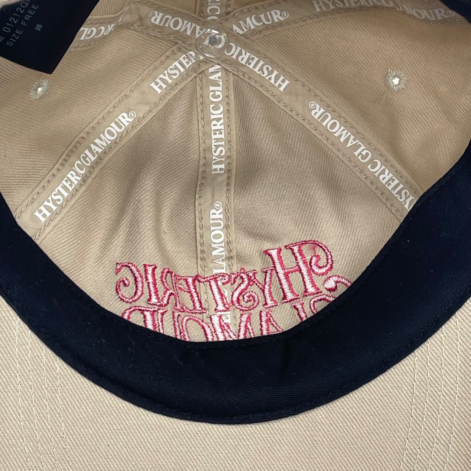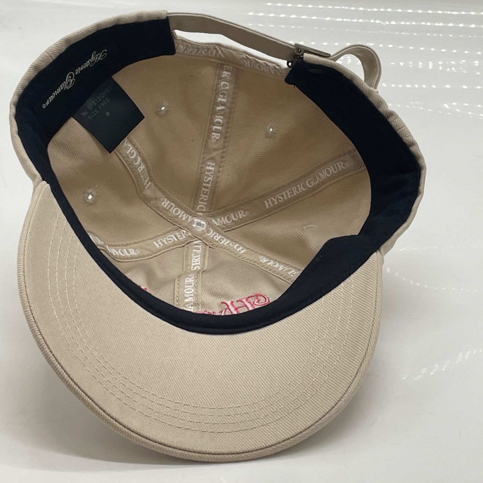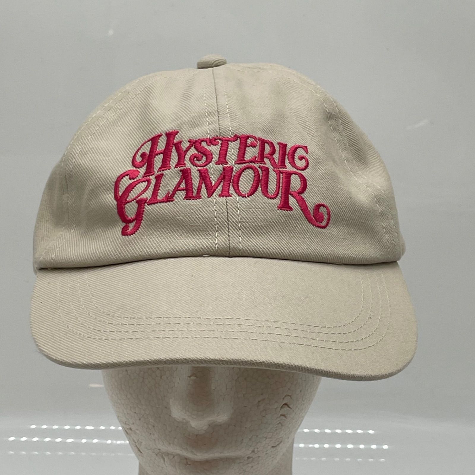 KO3650□ヒステリックグラマー コットン キャップ ベージュ×ピンク ロゴ刺繍 フリーサイズ