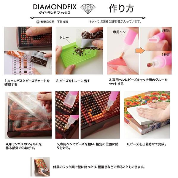 ノリ付きのキャンバスに専用ビーズを貼って仕上げるアートです。
