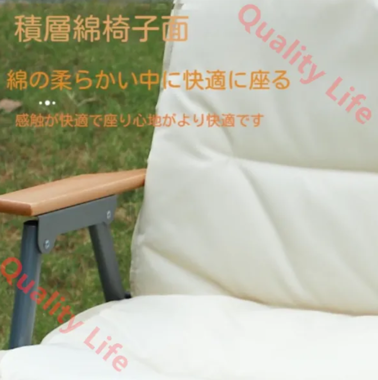 ? クッション付きで、座面と背もたれに柔らかさを加えてくれます。長時間座っても腰や背中に疲れを感じにくく、快適な着座感を提供します。また、アームレストが付いているため、腕を置いてリラックスすることができ、より快適な休憩を楽しめます。