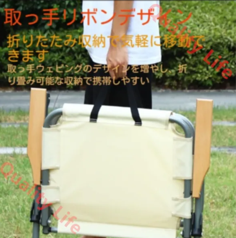 木製の素材を使用しているため、自然な温かみと質感があります。木目調のデザインにより、アウトドアの雰囲気に溶け込みやすく、快適な雰囲気を演出します。また、木は耐久性が高く、長期間にわたりアウトドアで使用することができます。繰り返し折りたたんでも、椅子の形状や質感が維持され、丈夫に作られています。