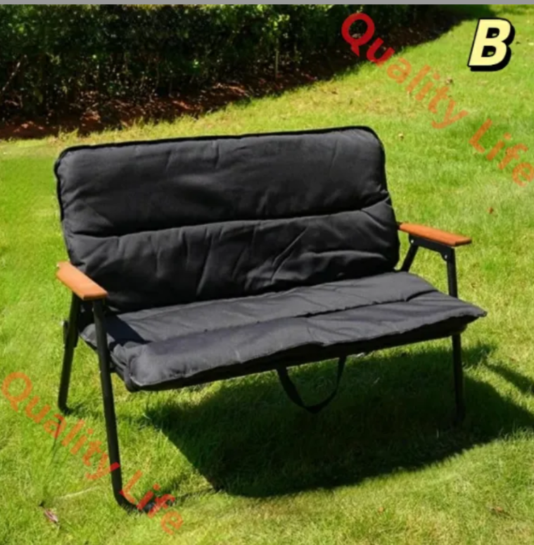 ? 釣りやバーベキュー、キャンプなどのアウトドアシーンで活躍するポータブルなベンチで、ダブル折りたたみ式で、背もたれを持つソファチェアやラウンジチェアとしても使えます。カジュアルなデザインで、アウトドアでの快適な休憩を可能にします。