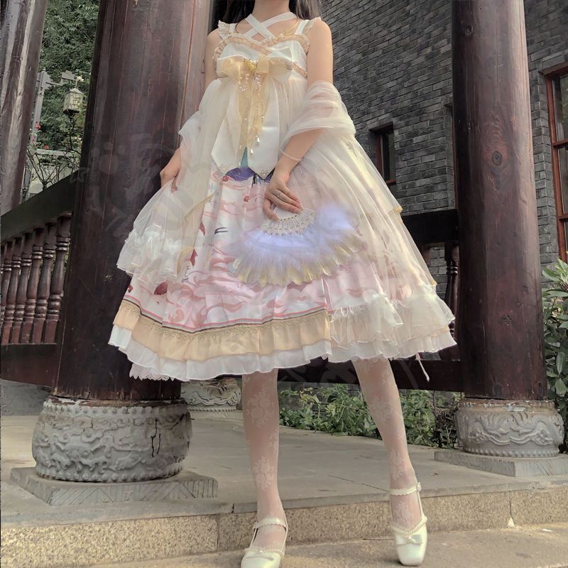 スタイルチャイナ風デザインとロリータ風の融合で、中華庭園をイメージした優雅なプリント