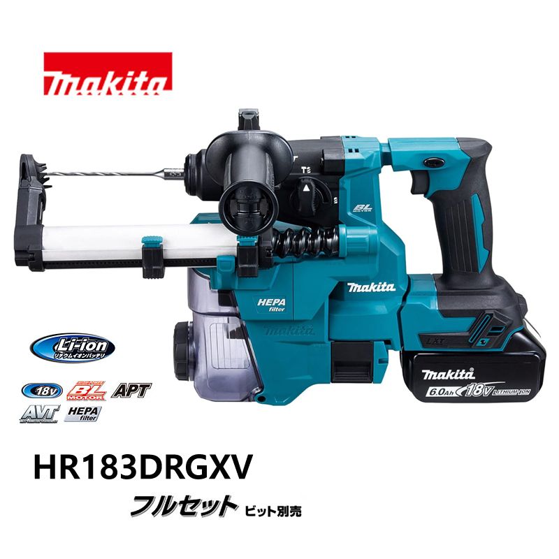 マキタ ハンマドリル 18mm 充電式ハンマドリル HR183DRGXV 青 ※集じんシステム付・ビット別売