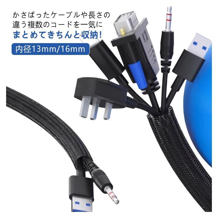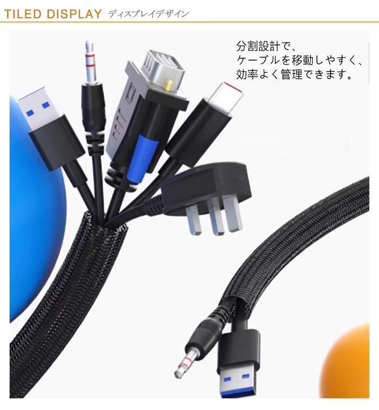 【しっかり保護・高耐摩耗性】このケーブルスリーブは耐火性、耐摩耗性と防塵性、柔軟性を兼ね備えたPET素材製なので、ペットがケーブルを噛んだりこすったりするあまり心配はありません。 240±10℃までの高温に耐えられ、断熱、発火防止に役立ち、保護と放熱が必要なケーブルやワイヤーなどを整理にぴったりのケーブル収納スリーブです。