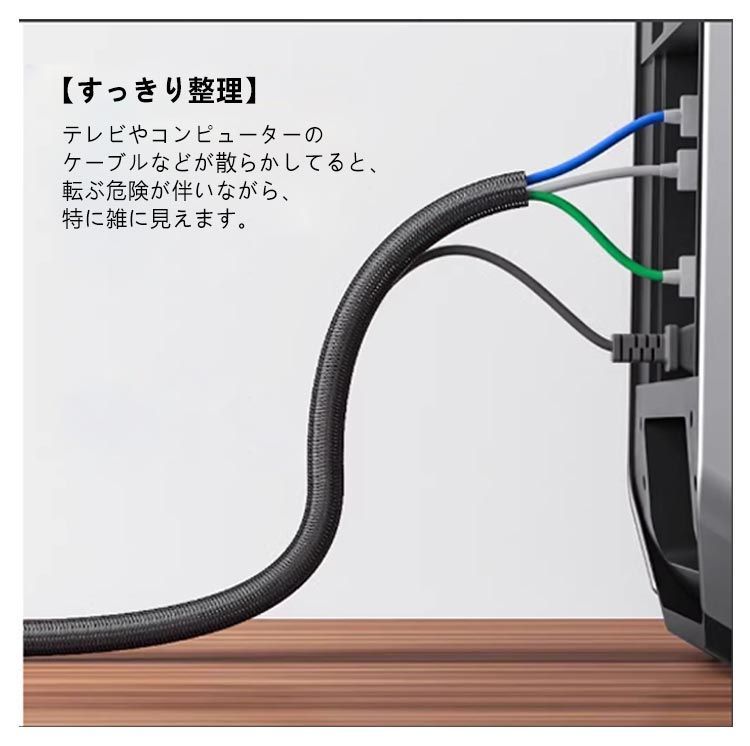 【すっきり整理】テレビやコンピューターのケーブルなどが散らかしてると、転ぶ危険が伴いながら、特に雑に見えます。ケーブルを整理し、子供が配線をいじたり、ペットのいたずらで、コードがごちゃごちゃになったり、破れて感電や火事になったり、ペット、猫、犬、ウサギなどの噛みつきをすることを防ぎ、より住みやすい生活環境を作られます。