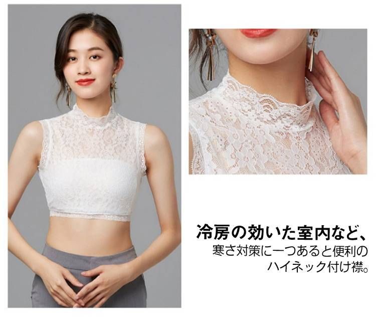 冷房の効いた室内など、寒さ対策に一つあると便利のハイネック付け襟。