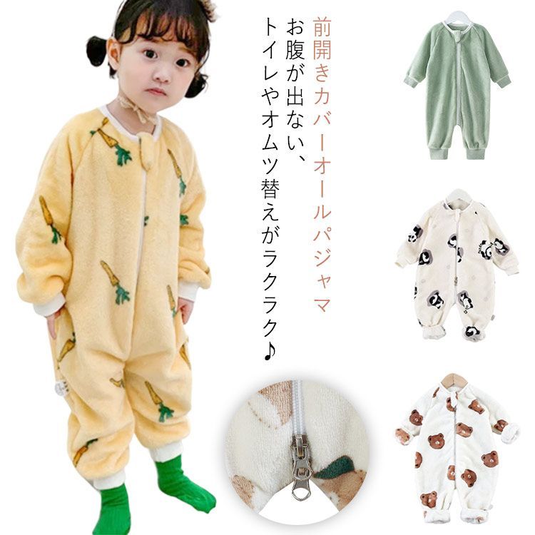 ファスナーはお尻まであり、トイレやオムツ替え時パジャマを着たままできるからとても便利。