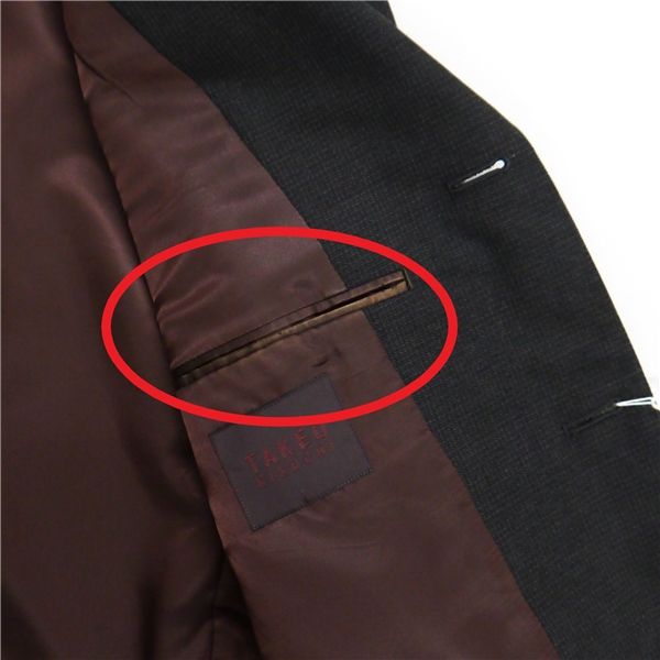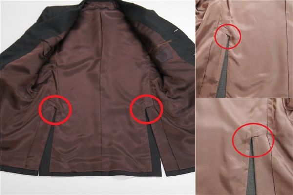 裏地状態:JA+JB+A+B+C(ジャケットの内胸左ポケット縁に変色・ベント両サイド裏地に破れが見受けられます。裏地部分となりますので普段のご着用には問題なく、今後もまだまだご愛用頂けるお品です。)
