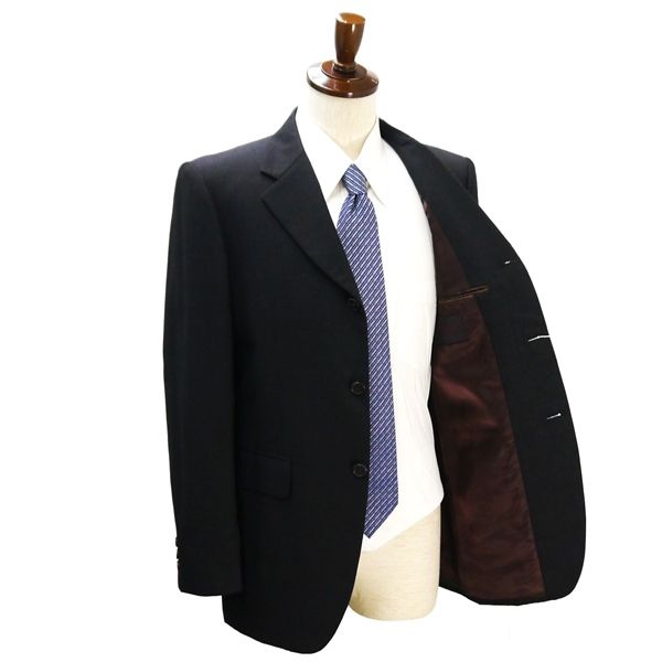 ・春秋冬対応。段返り3つボタンシングル。総裏地仕上げ。サイドベンツ。フラップポケット。ネーム刺繍なし。開き見せ。