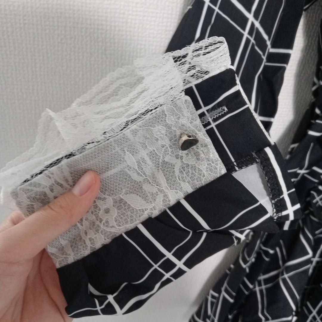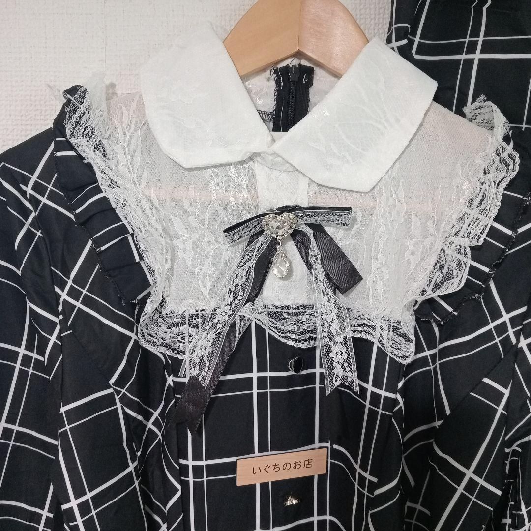 大きなレース襟とリボンがポイントの長袖ワンピースです。