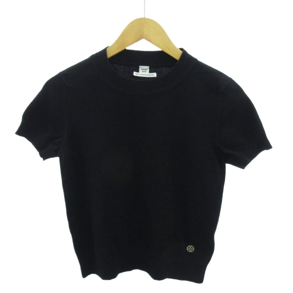 【商品名】エルメス HERMES カシミヤ ニット セーター ショート丈 チビ丈 半袖 英国製 38 黒 ブラック 1206