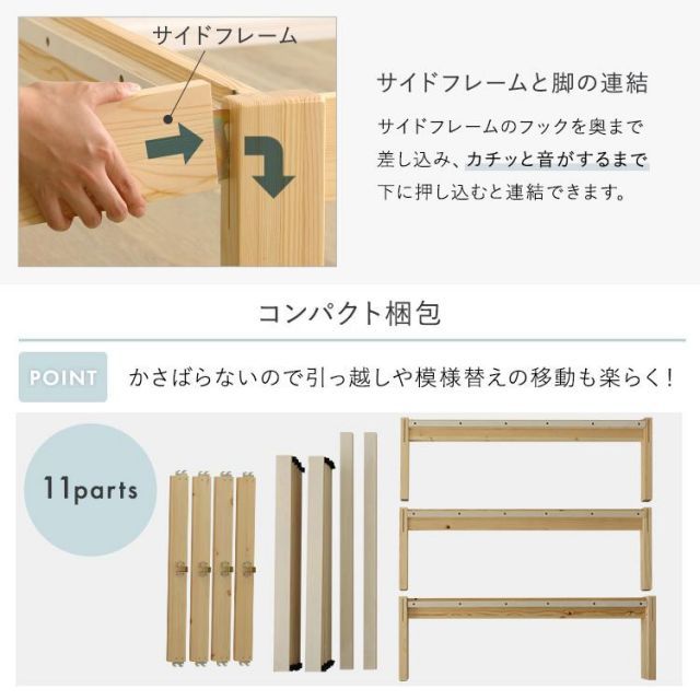 商品名:2分で完成!組立簡単ベッド ハイタイプ(セミシングル)