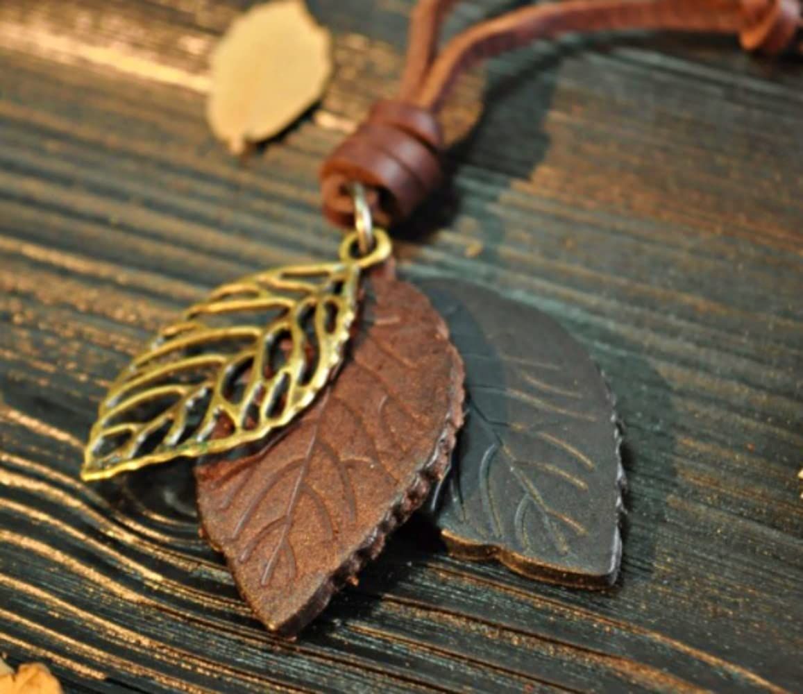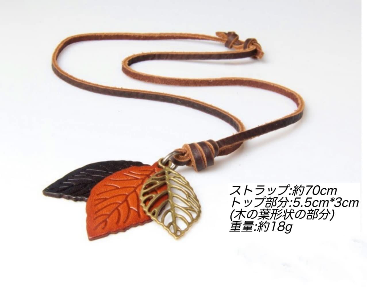 ロングレザーネックレス 革紐 木の葉型 ペンダント ユニセックス カジュアル (ダークブラウン)