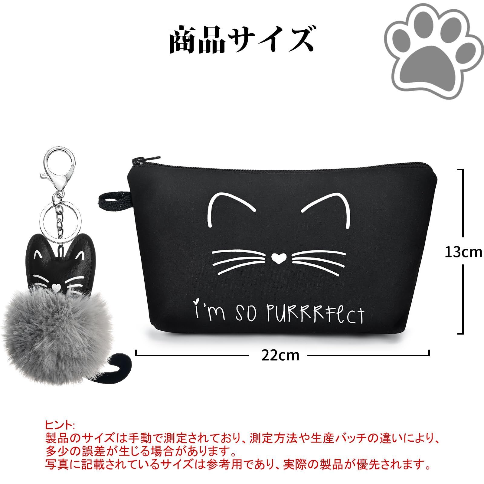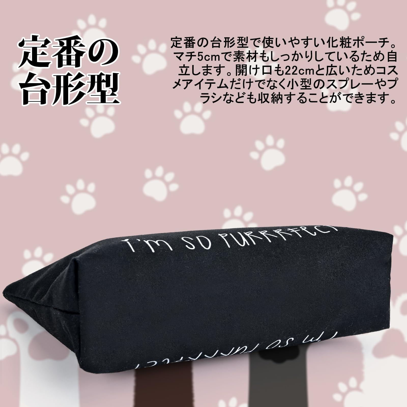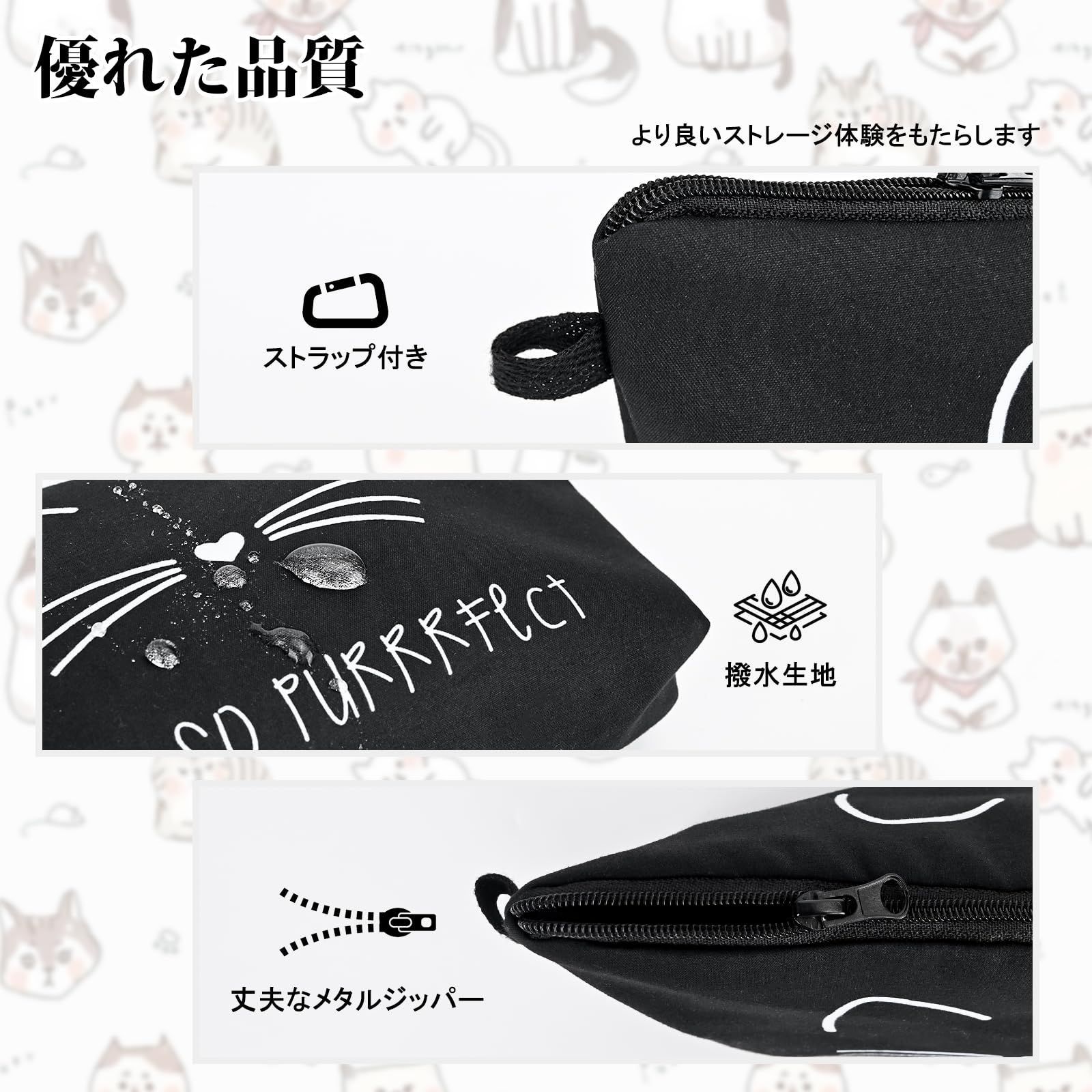 化粧ポーチ レディース メイクポーチ コスメポーチ 大容量 かわいい おしゃれ 撥水 収納ポーチ ガジェットケース 持ち運び 旅行用 猫柄 (ブラック)