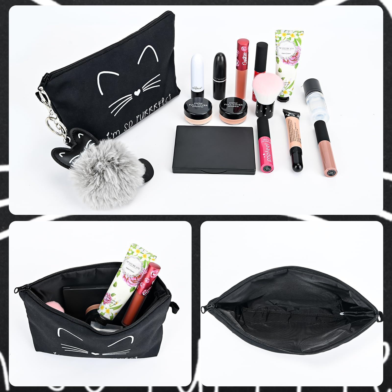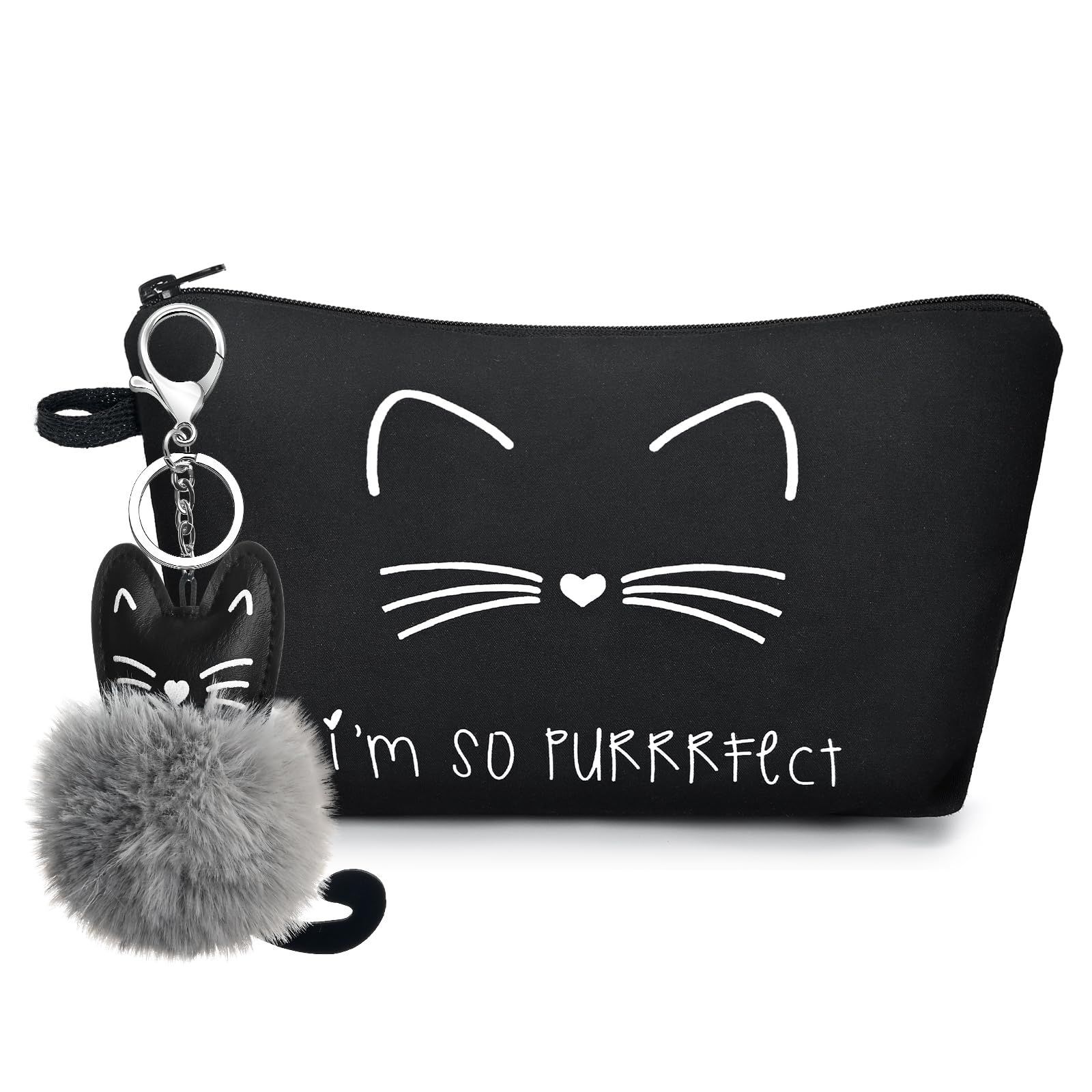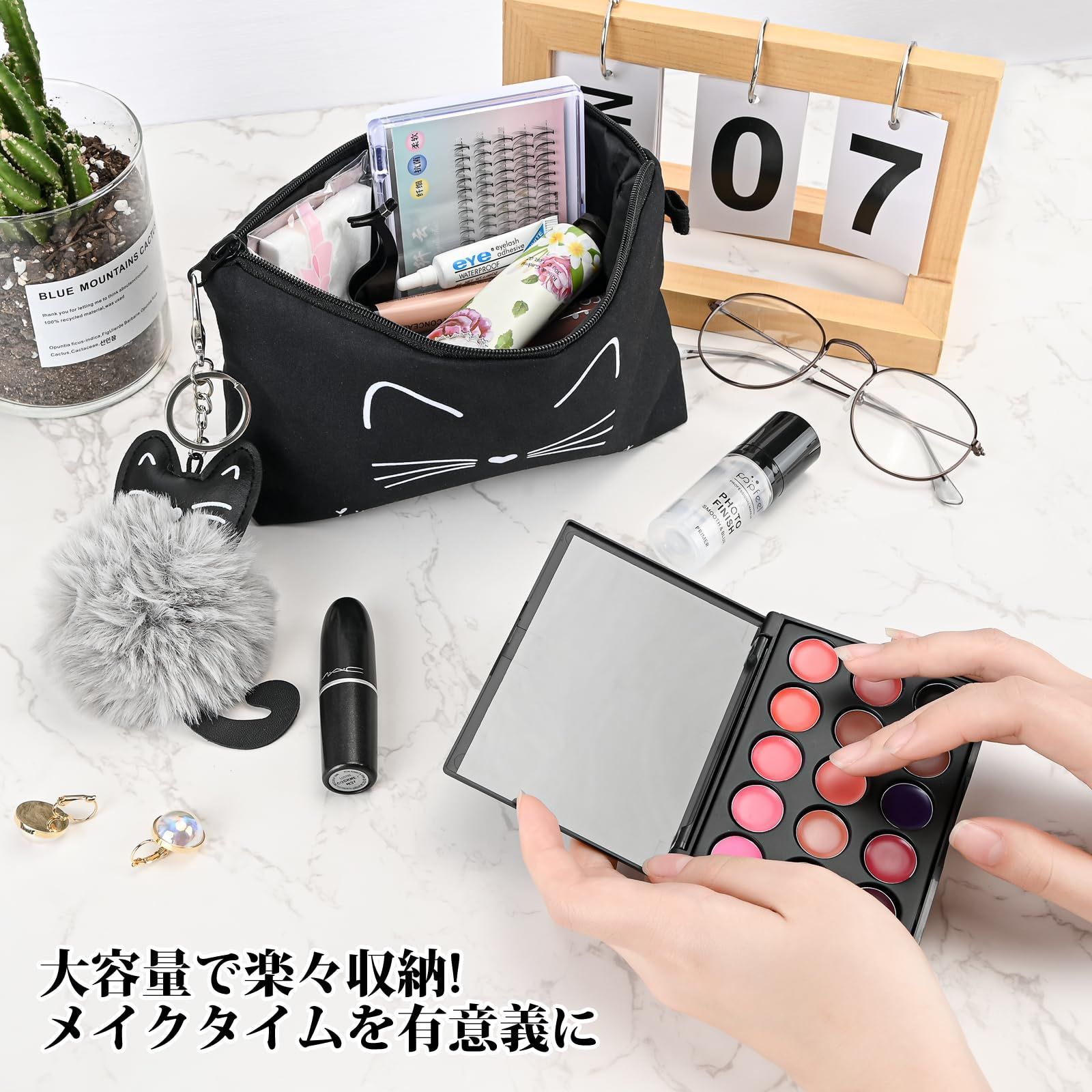 化粧ポーチ レディース メイクポーチ コスメポーチ 大容量 かわいい おしゃれ 撥水 収納ポーチ ガジェットケース 持ち運び 旅行用 猫柄 (ブラック)