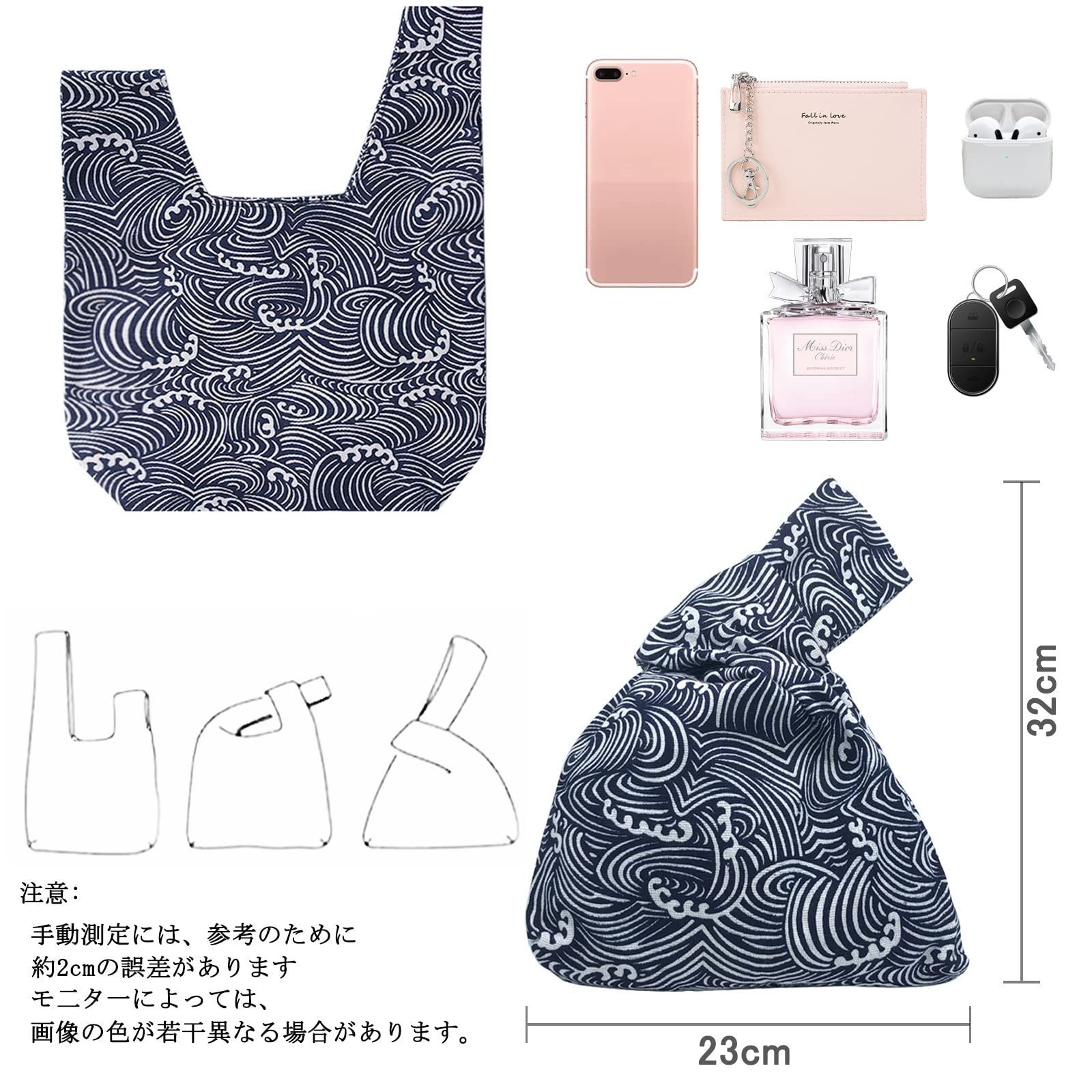 【デザイン】ミニ、和風のかわいい柄、内側と外側に2層の生地をステッチして品質を向上。