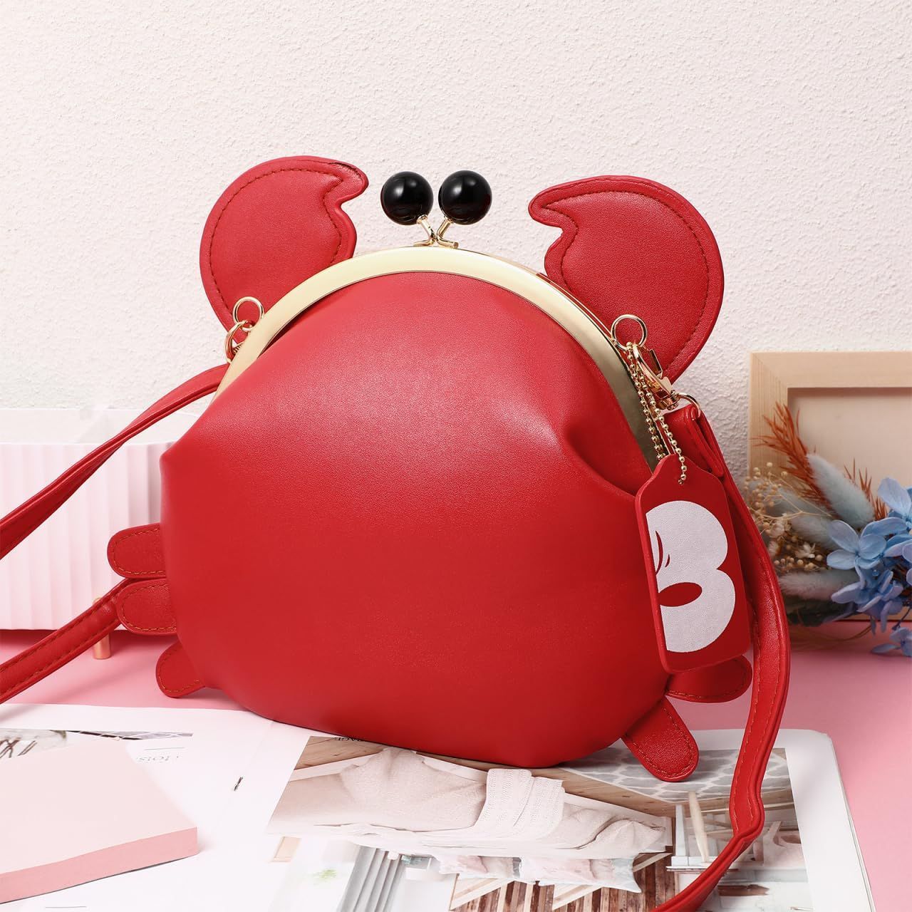 [PRETYZOOM] カニ型ショルダーバッグ レディース Puレザー クロスボディバッグ 斜めがけ 調節可能ストラップ かわいいユニークデザイン 10.2インチ 大容量 通勤・旅行用