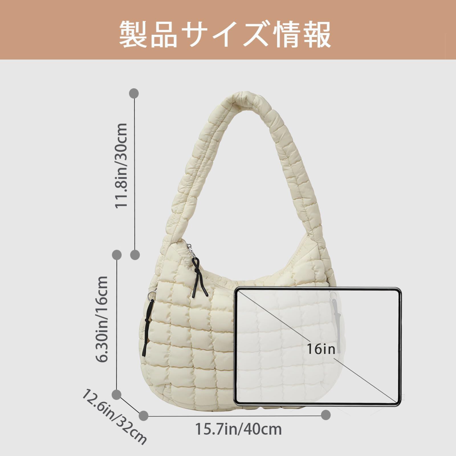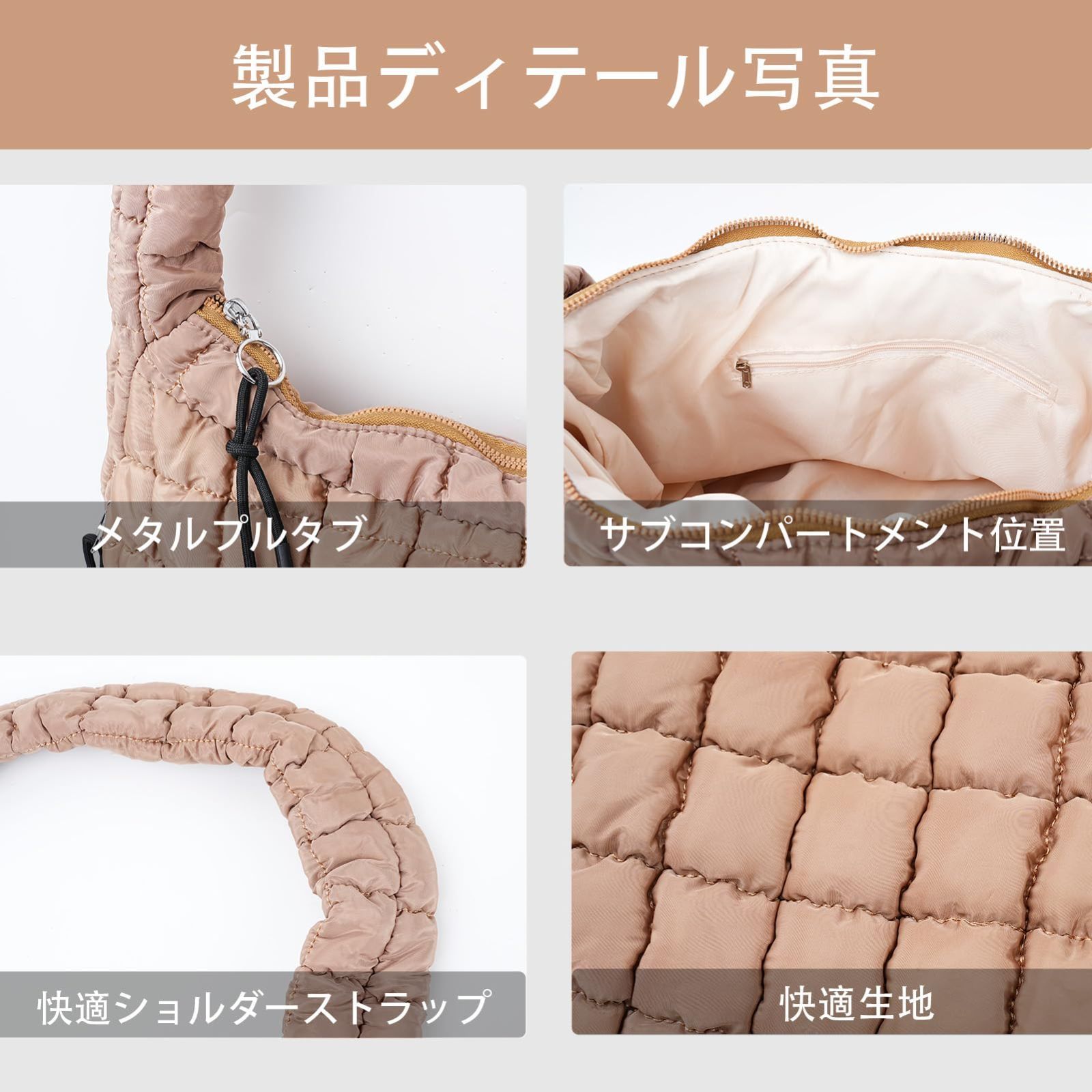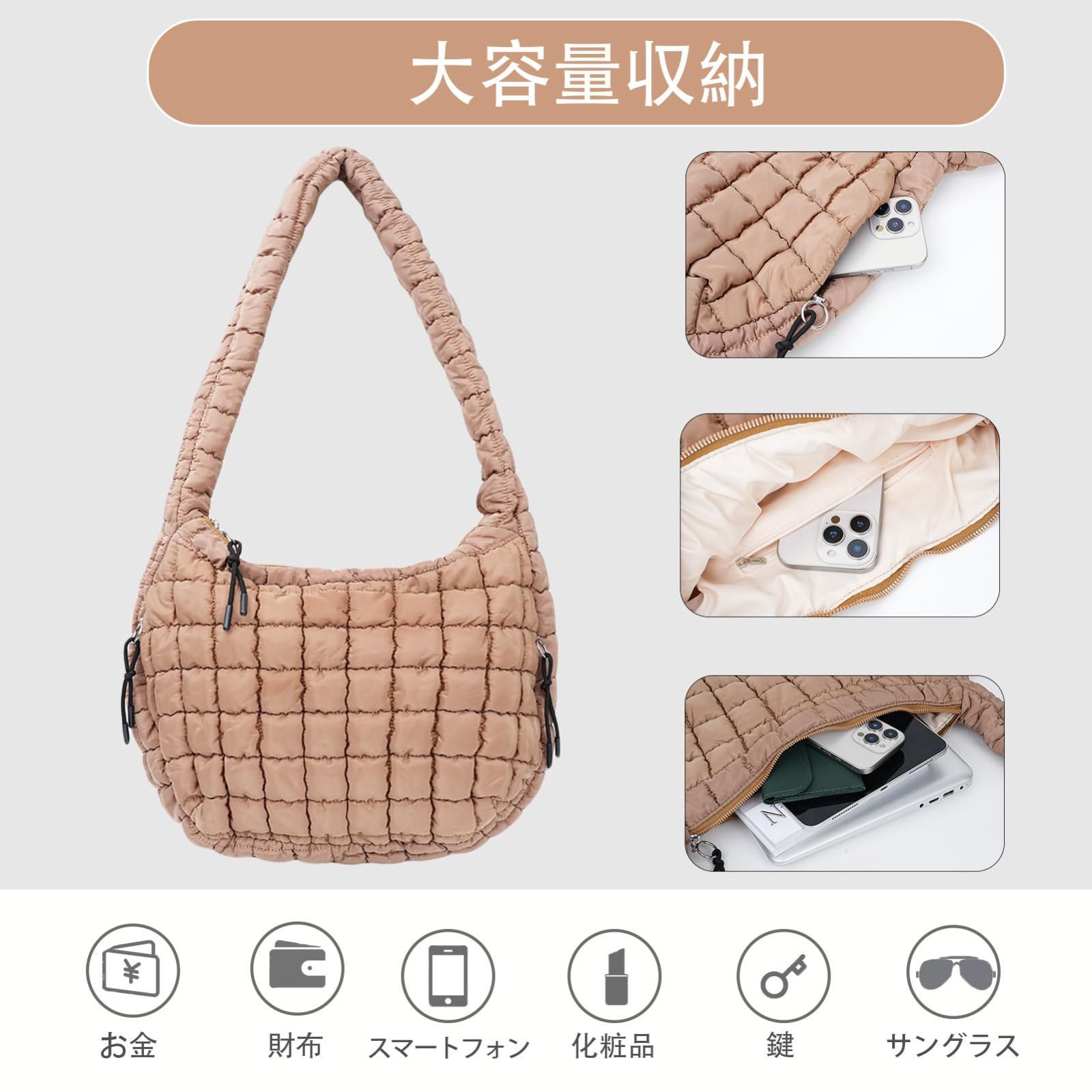 [Maeau] 斜めがけ キルティングバッグ レディース ハーフムーンバッグ 三日月型 軽量 大容量 柔らかい 収納 かわいい ふわふわ チャック付き 長さ調整可能 通勤 通学 カジュアル 韓国 旅行用 雲形