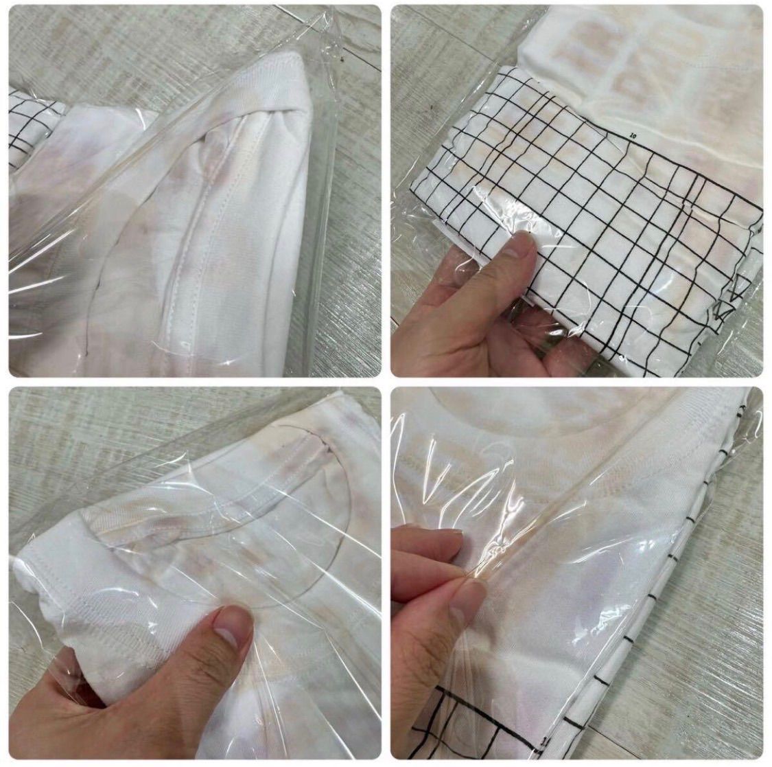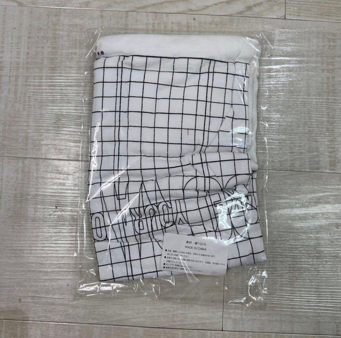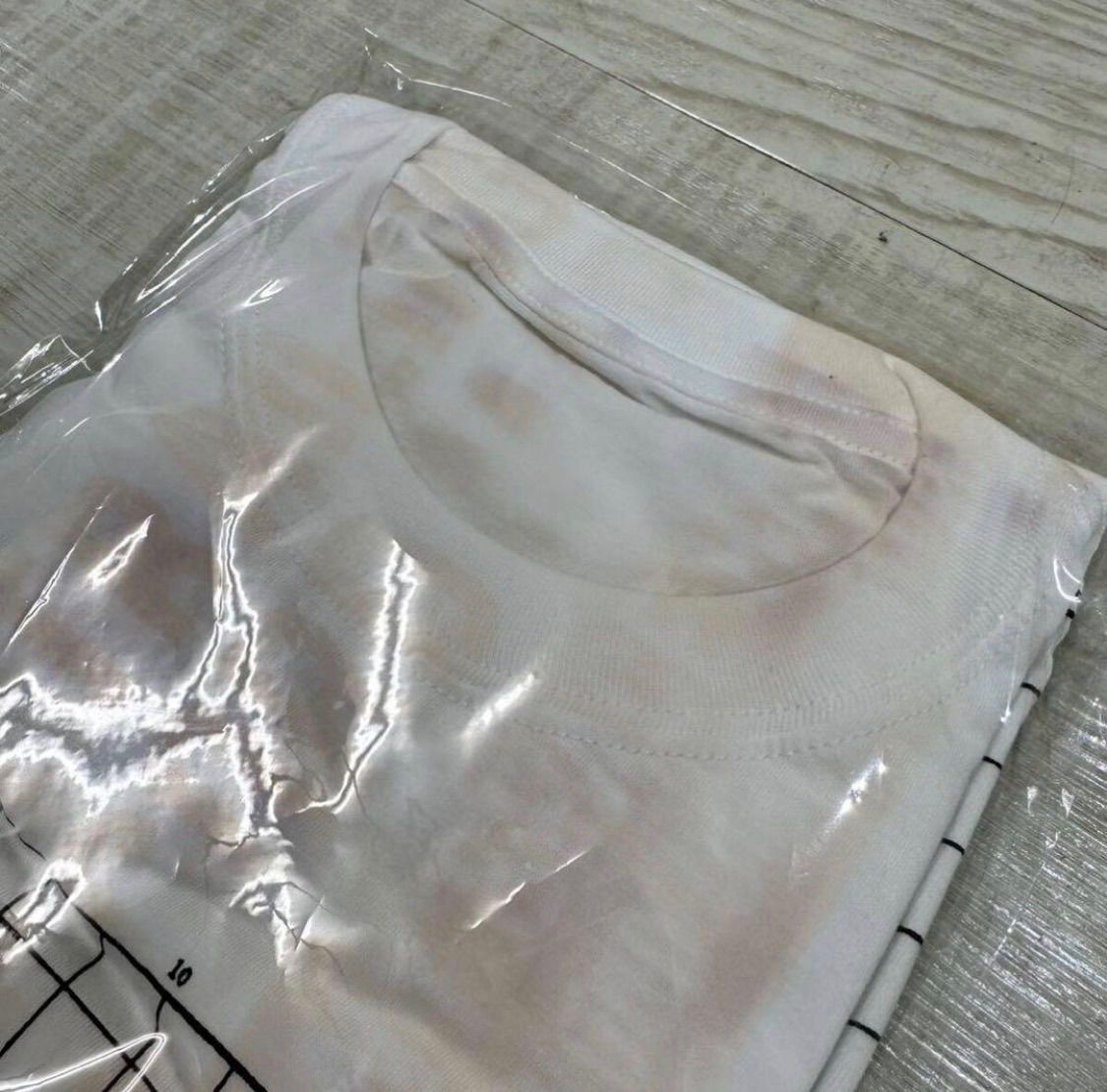 【状態】 未使用品ですが、長期保管の為Tシャツにシートが色移りして汚れています。シートに折れあり。(画像にてご確認下さい)