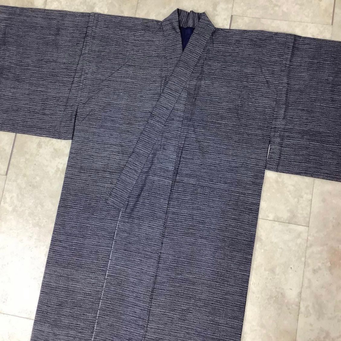 ⬛️kimomo +one⬛️男前屋⬛️未使用同然⬛️本場久留米絣⬛️本藍染手織り木綿⬛️書生絣⬛️男着物⬛️袷⬛️裄68cm肩丈129.5cm⬛️書生絣雪ん子絣蚊絣男着物男長羽織男襦袢男袴角帯男帯