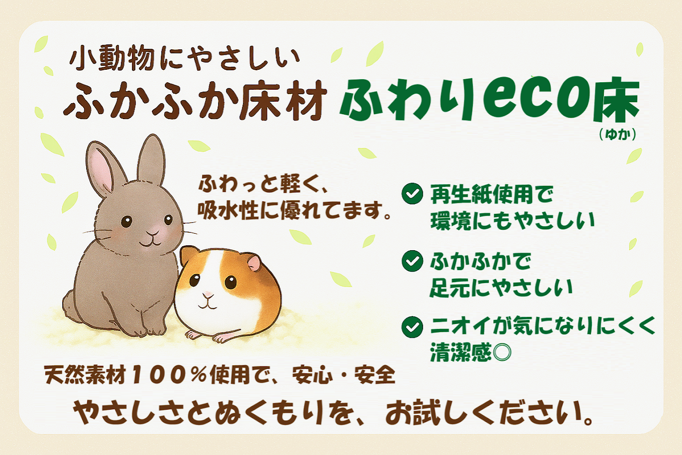 \ 小動物にやさしい、ふかふか床材 /