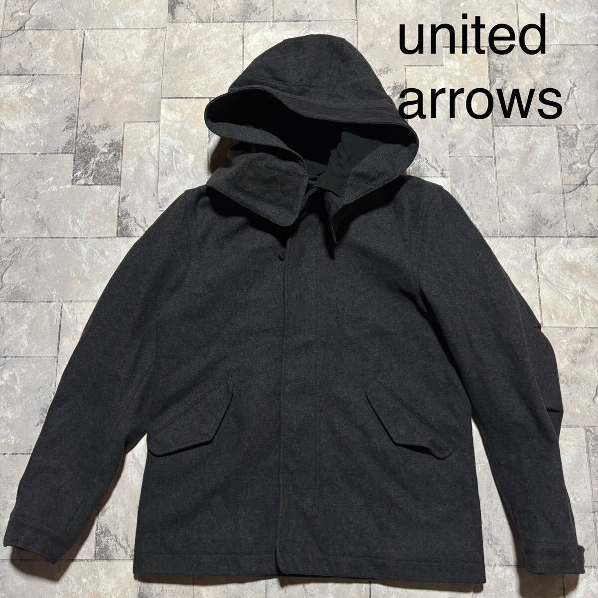 united arrows ユナイテッドアローズ ウールジャケット 中綿 ダブルジップ フード取り外し可 グレー サイズL 玉FS1817