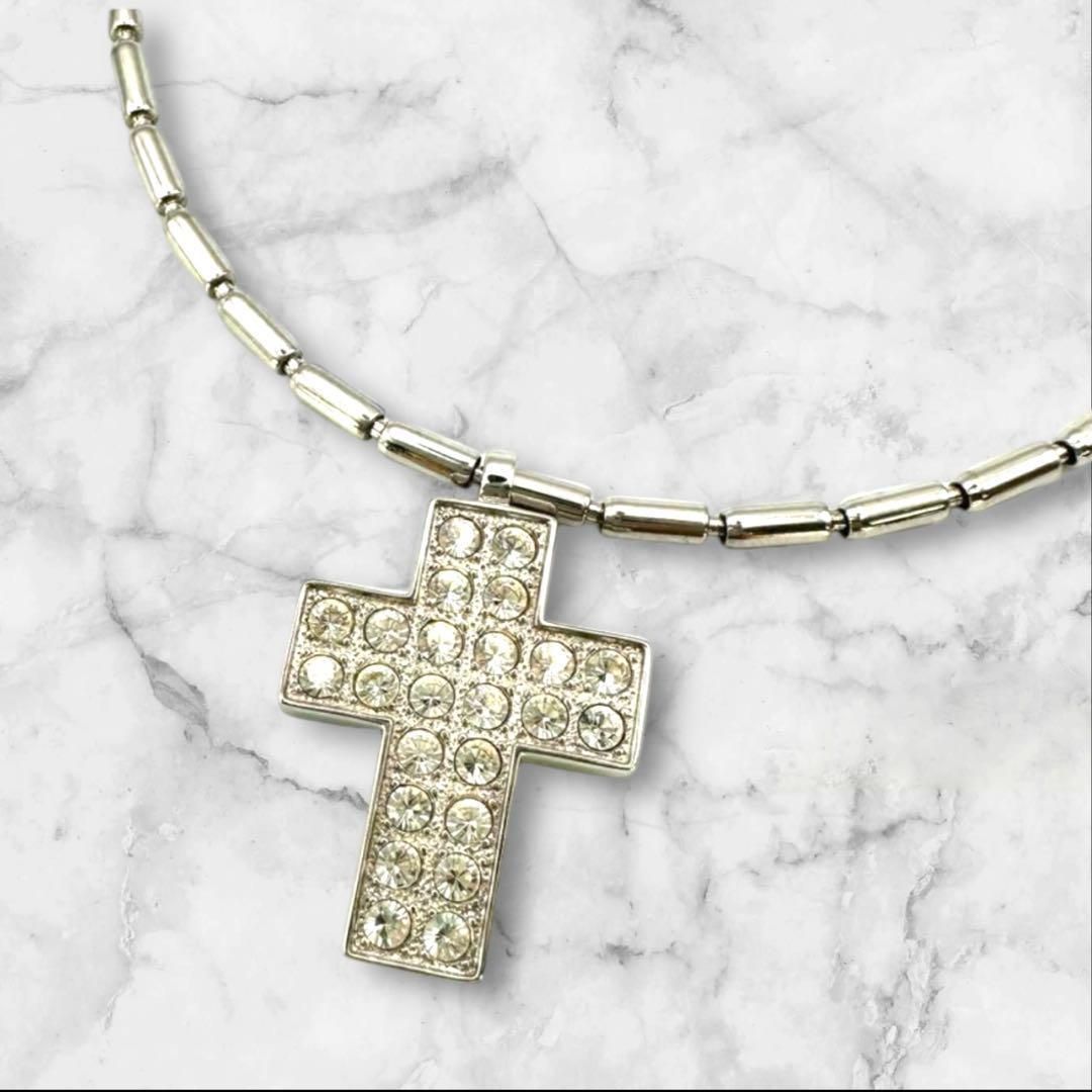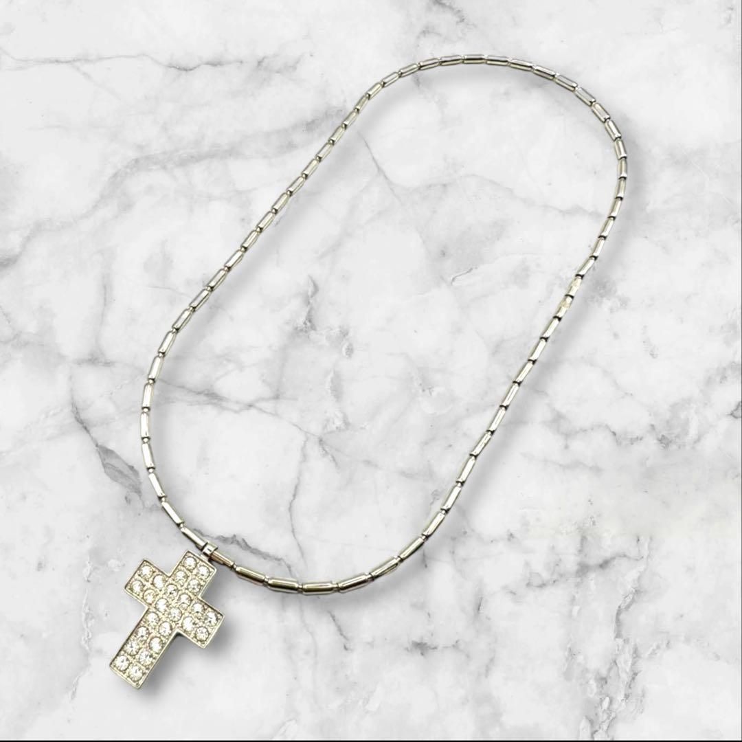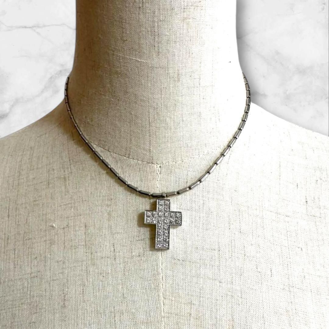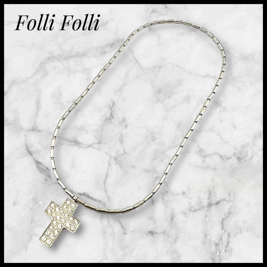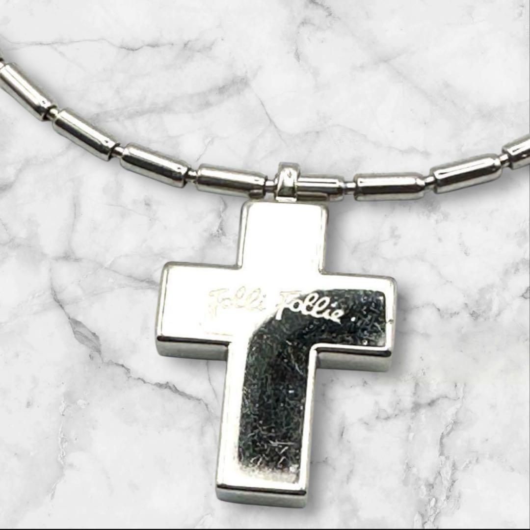 良品 ネックレス フォリフォリ Folli Follie クロス 十字架 シルバー 華やか キラキラ スワロフスキー 女性 レディース クリスマス アクセサリー ジュエリー