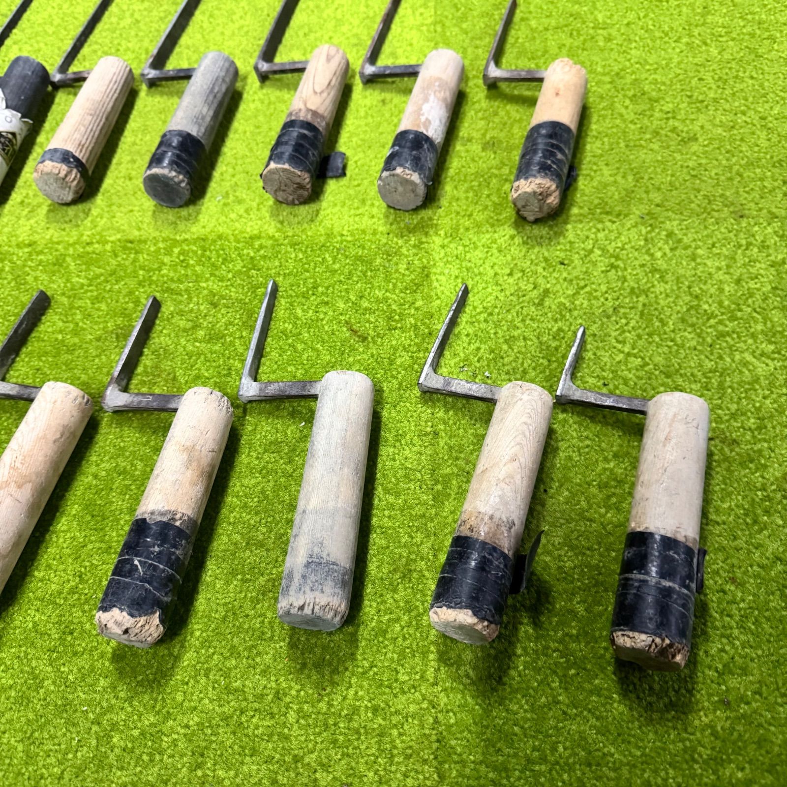 様々な目地幅や、多様な仕上げ形状に対応できる目地コテの大量セットです。タイル職人、左官職人、または本格的なエクステリアDIYをされる方におすすめです。