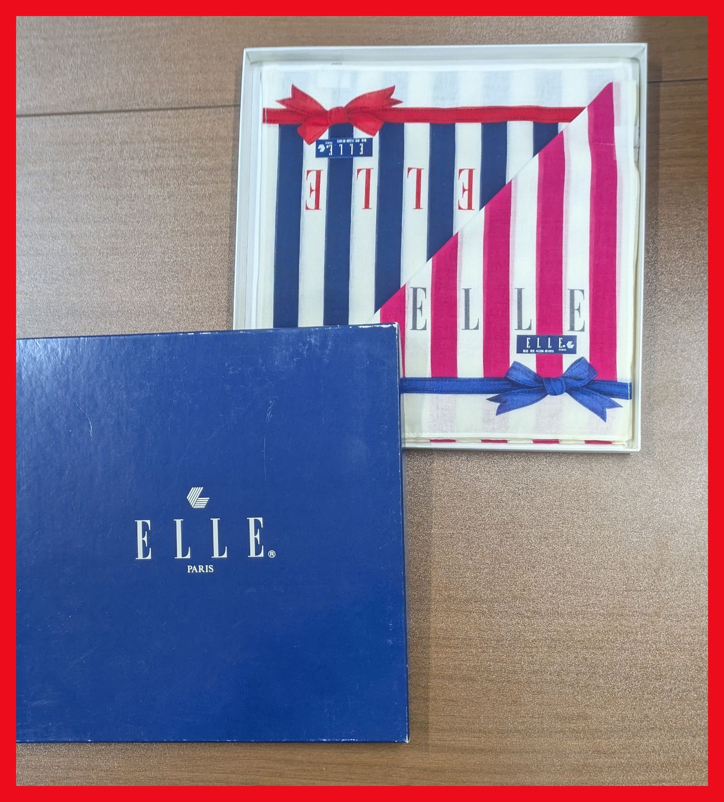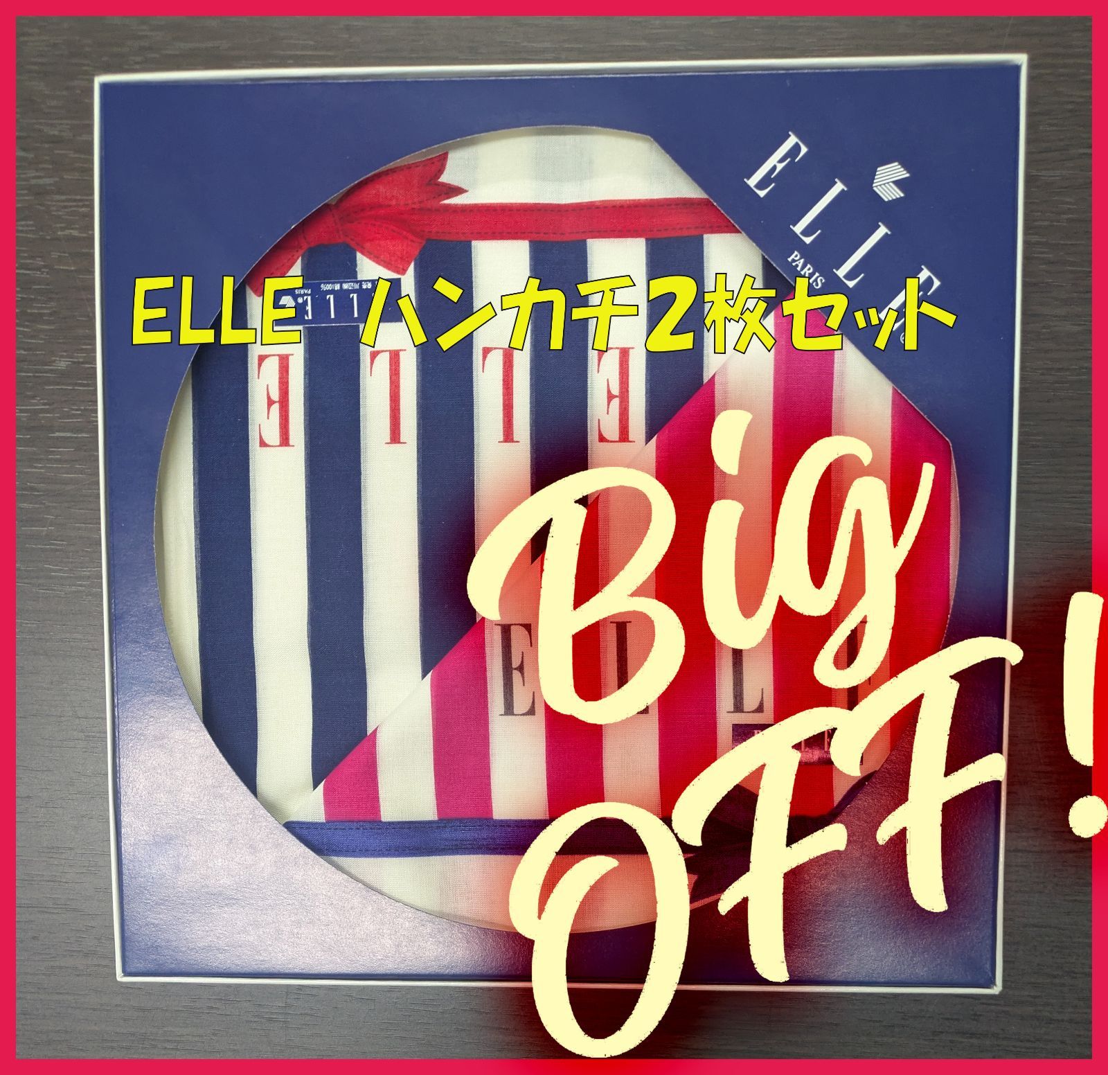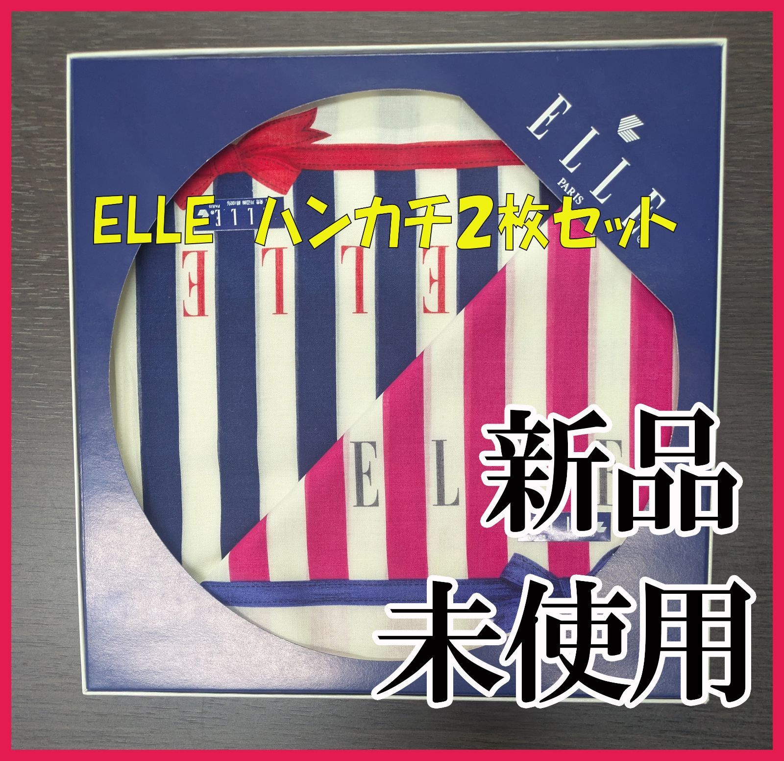 【新品未使用★ELLE箱入りハンカチ2枚セット★】トリコロールをモチーフにしたストライプ柄のハンカチ2枚セットです。管2025010041
