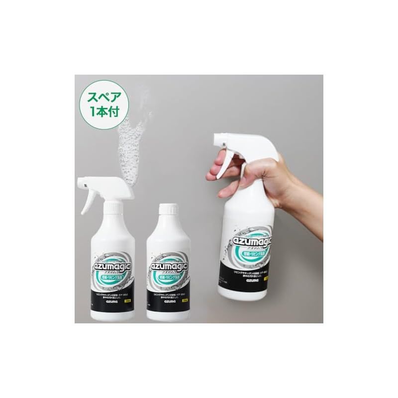 「アズマジック」はハウスクリーニングの現場で使用している洗剤をベースに、家庭用にアレンジした強力洗剤。 泡状の洗剤が汚れに入り込み、細かく分解し、汚れをスッキリ落とします。