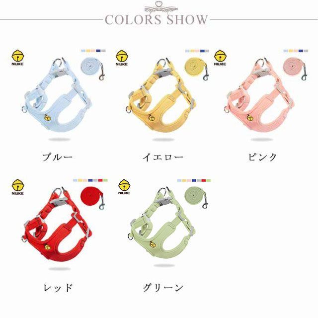 XS:胴周り34-44cm 参考体重3-5kg リードの長さ150cm