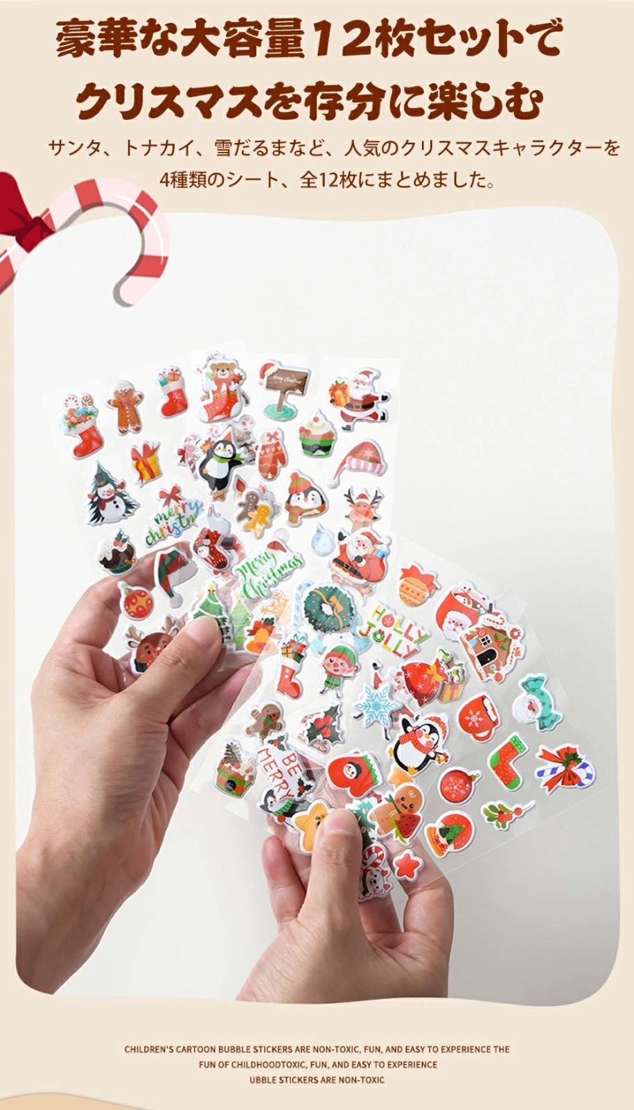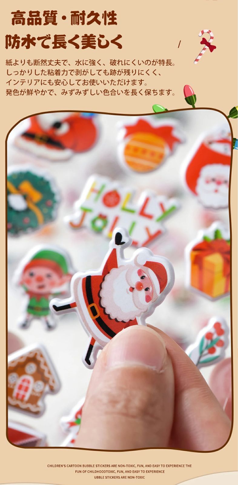 約12枚の豊富なシールがたっぷり入ったセットです。クリスマス期間中、手帳やグリーティングカード、贈り物の包装など、さまざまなデコレーションにたっぷり使えて、何度でも楽しめます。コスパ抜群で、ご家族やクラスでの工作にも最適です。
