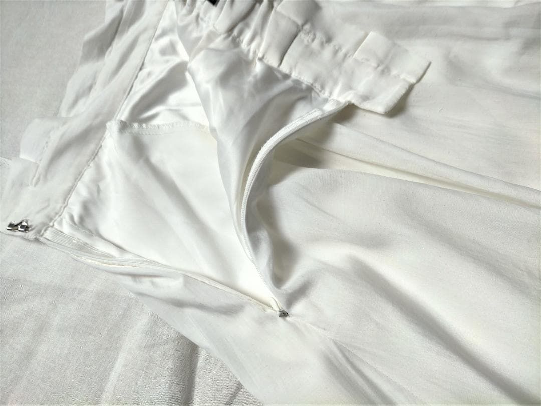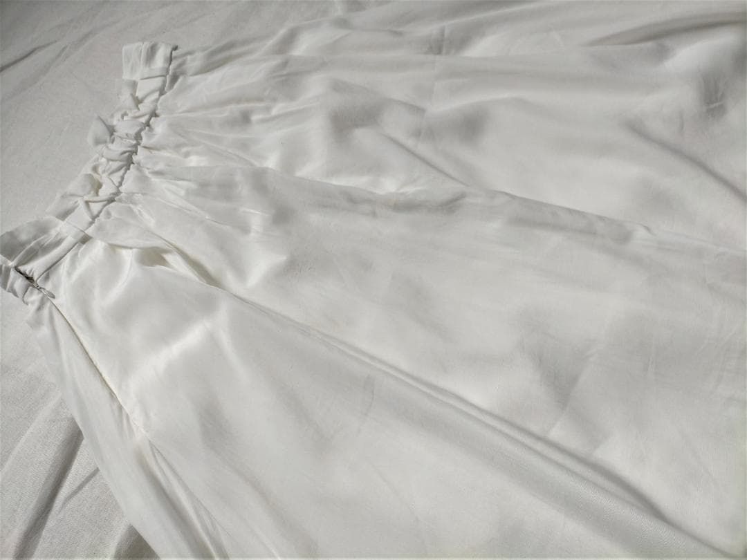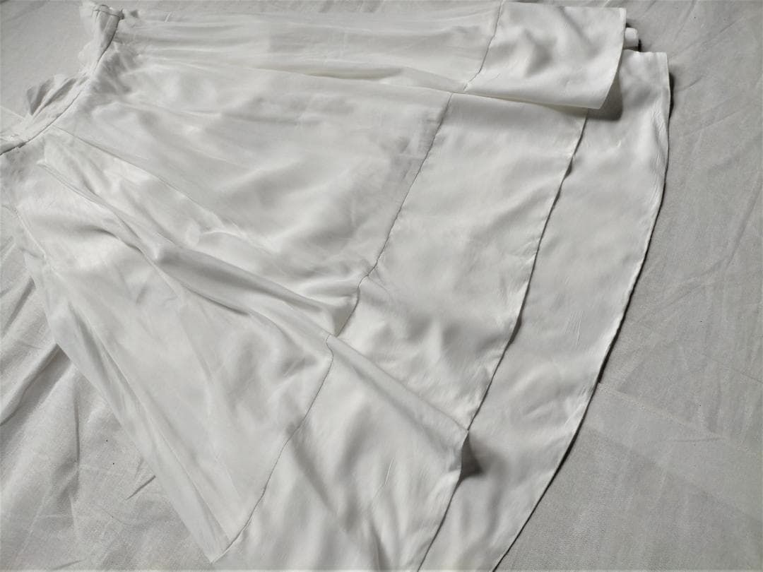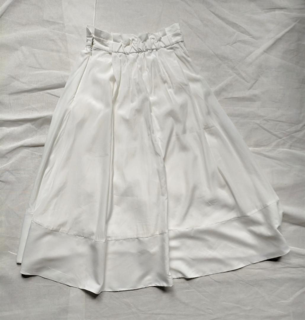 エアリーでしなやかな、光沢感のある素材のイレギュラーヘムフレアースカート。