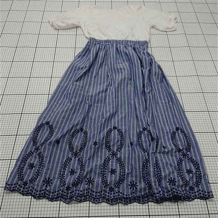 デザイン: 0 エニィスィス any SiS ストライプ刺繍ワンピース ブルー系 レディース 2サイズ 1511120009570