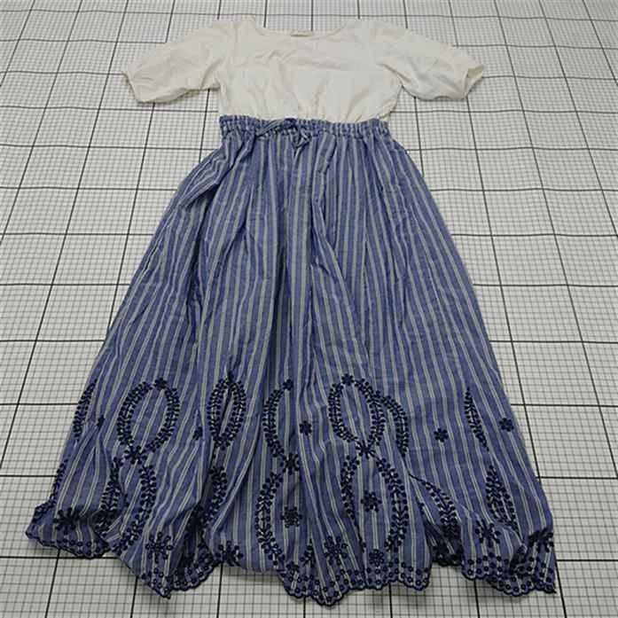 色: エニィスィス any SiS ストライプ刺繍ワンピース ブルー系 レディース 2サイズ