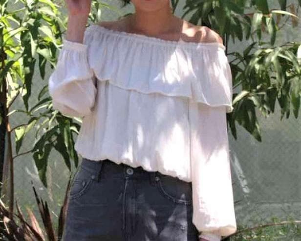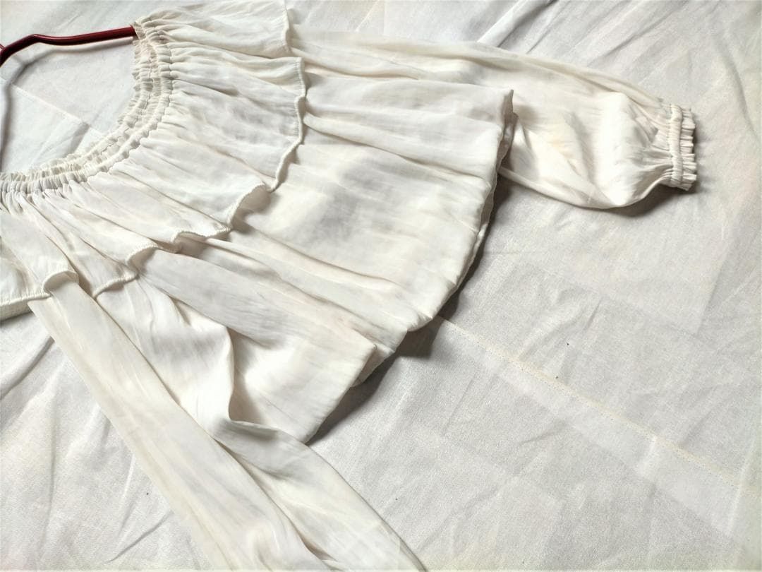 肩を落としてオフショルダーで着ても可愛いブラウス