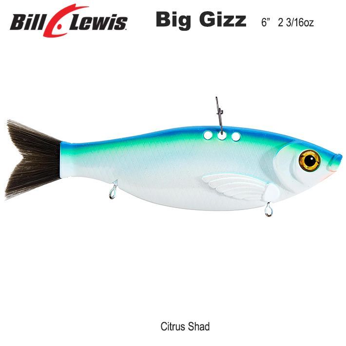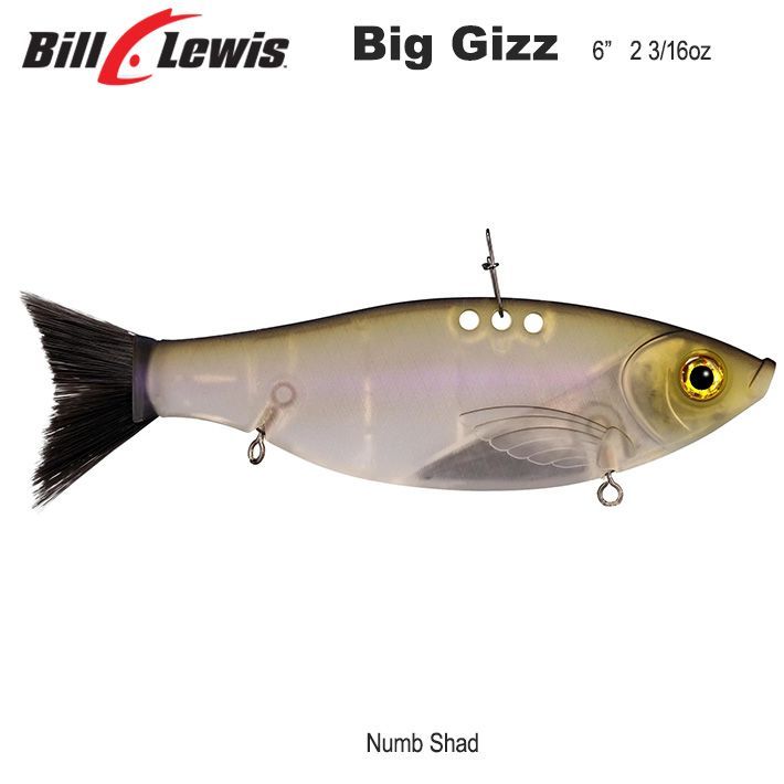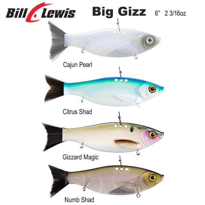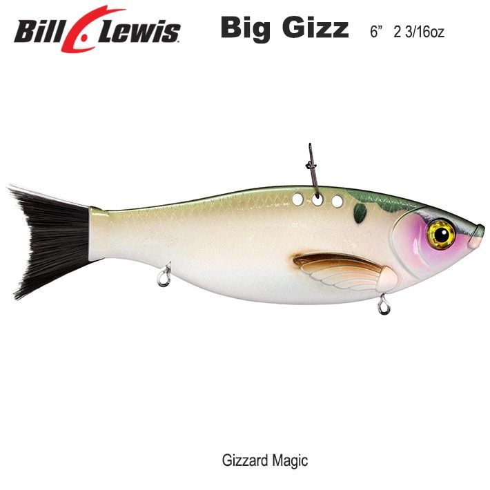 ビル・ルイス・ビッグギズは、汎用性を最大限に高める独自のデザインを採用。様々なリトリーブテクニックで、ギザードシャッド、ブルーギル、その他の大型餌魚を忠実に再現します。大型のベイトフィッシュプロファイルとファイバーテールを採用したビッグギズは、トップにスナップと3つのホールを装備。スプーン、ブレードベイト、リップレスクランクベイトなど、様々なルアーを自在に操ることができます。