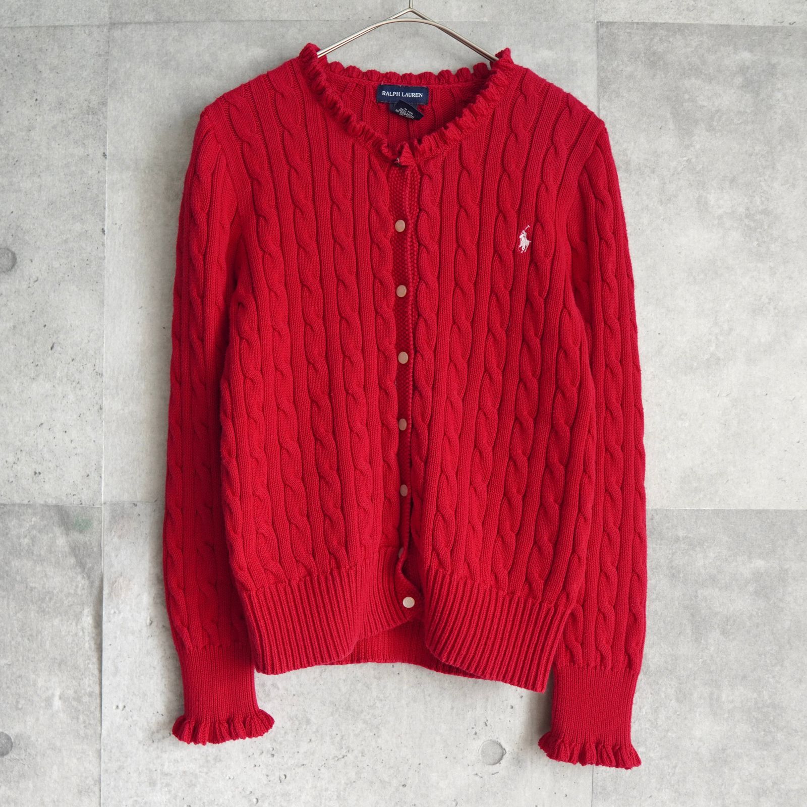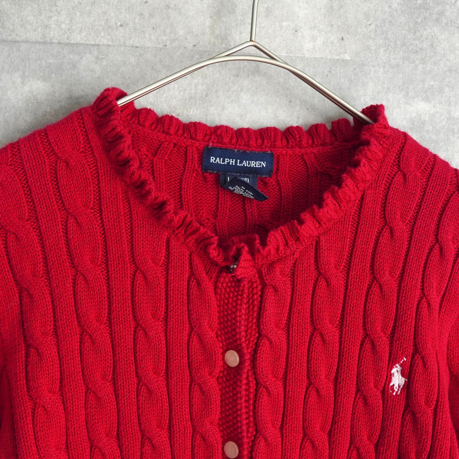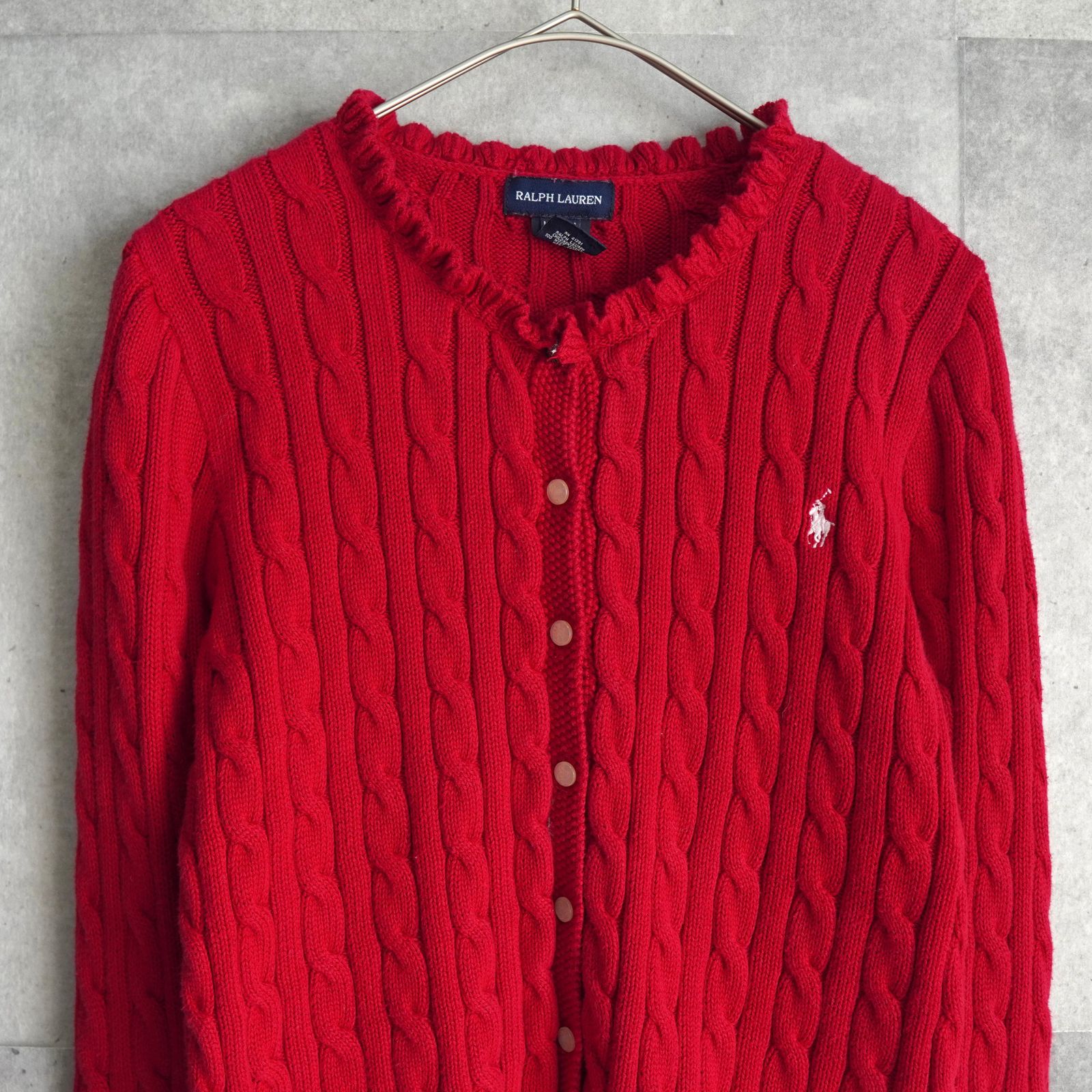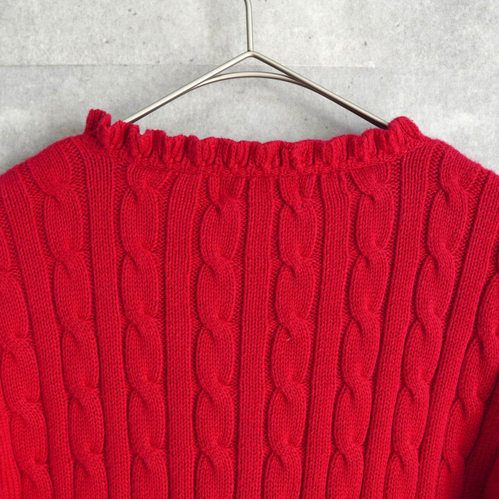 ポロ ラルフローレン フリル ケーブル編み コットン ニット カーディガン レッド レディース