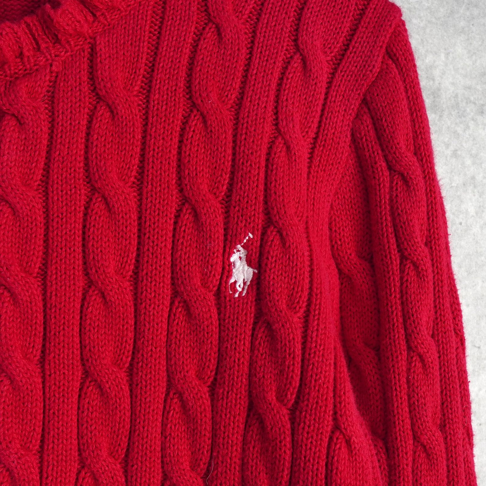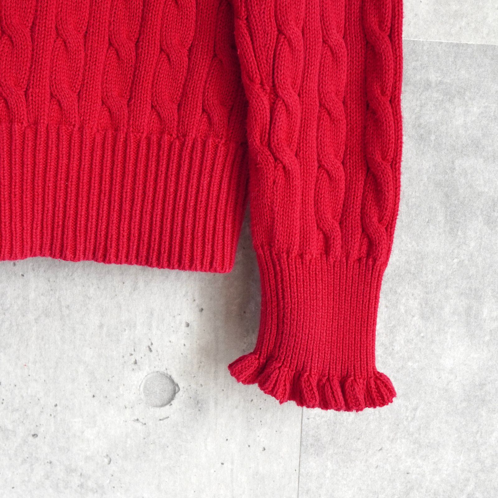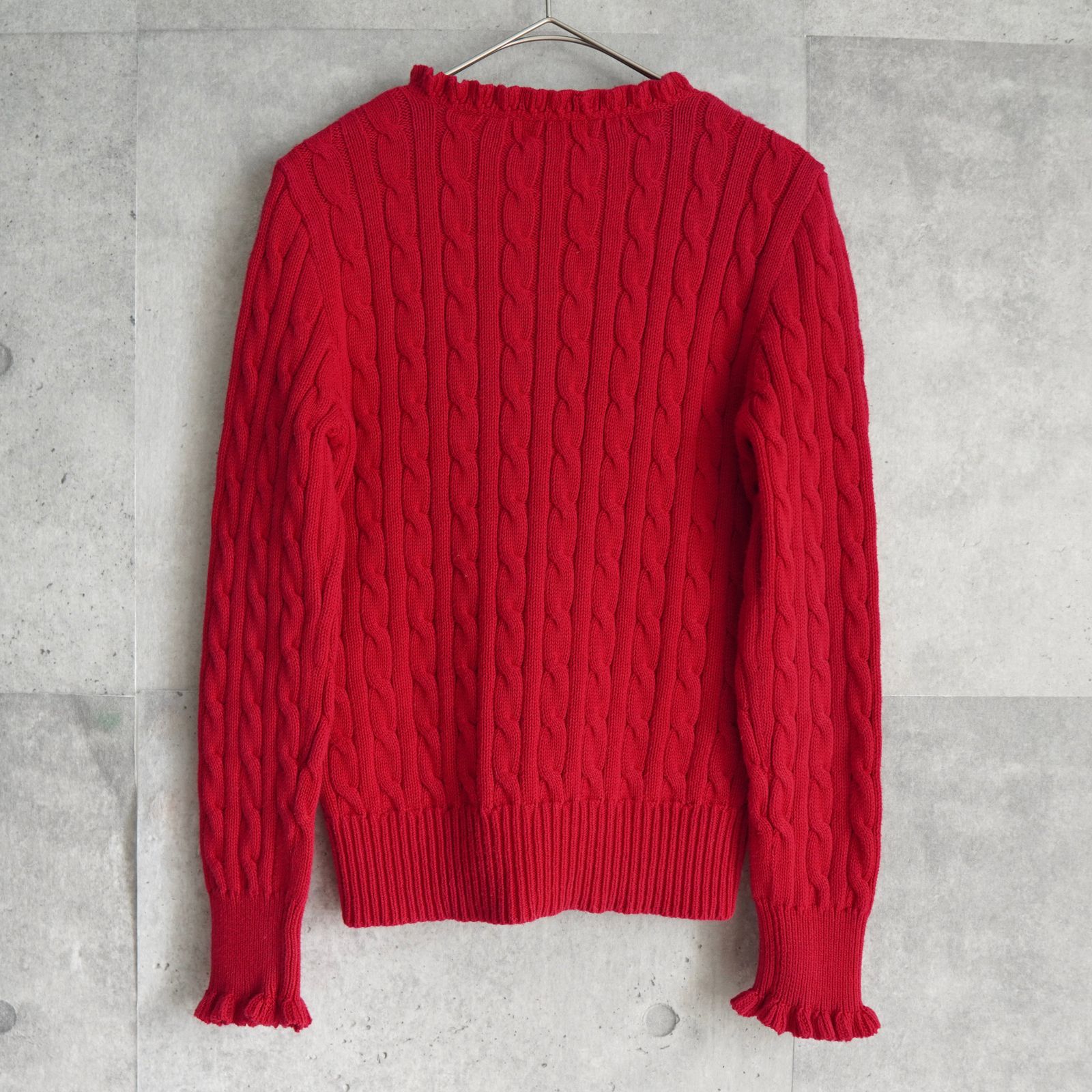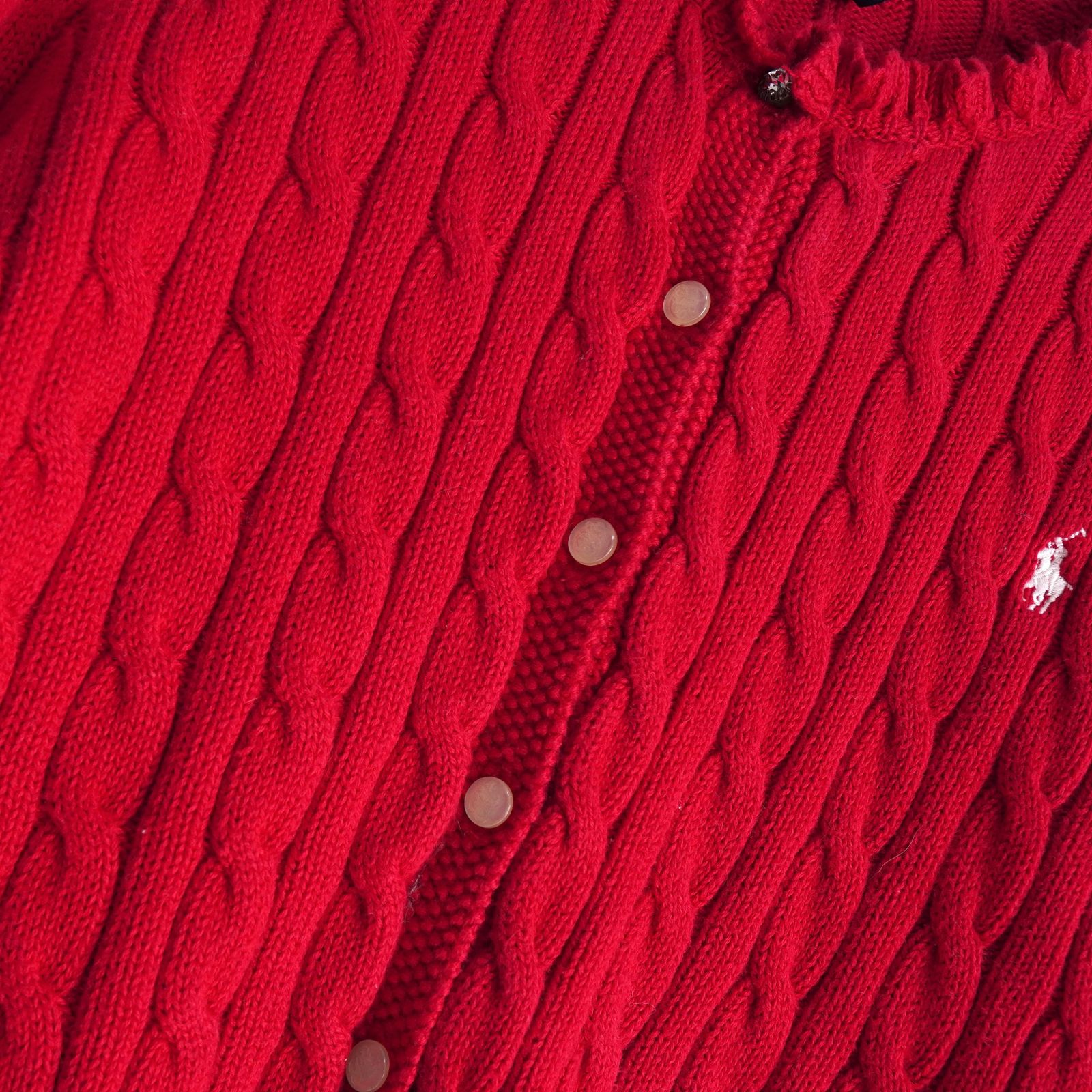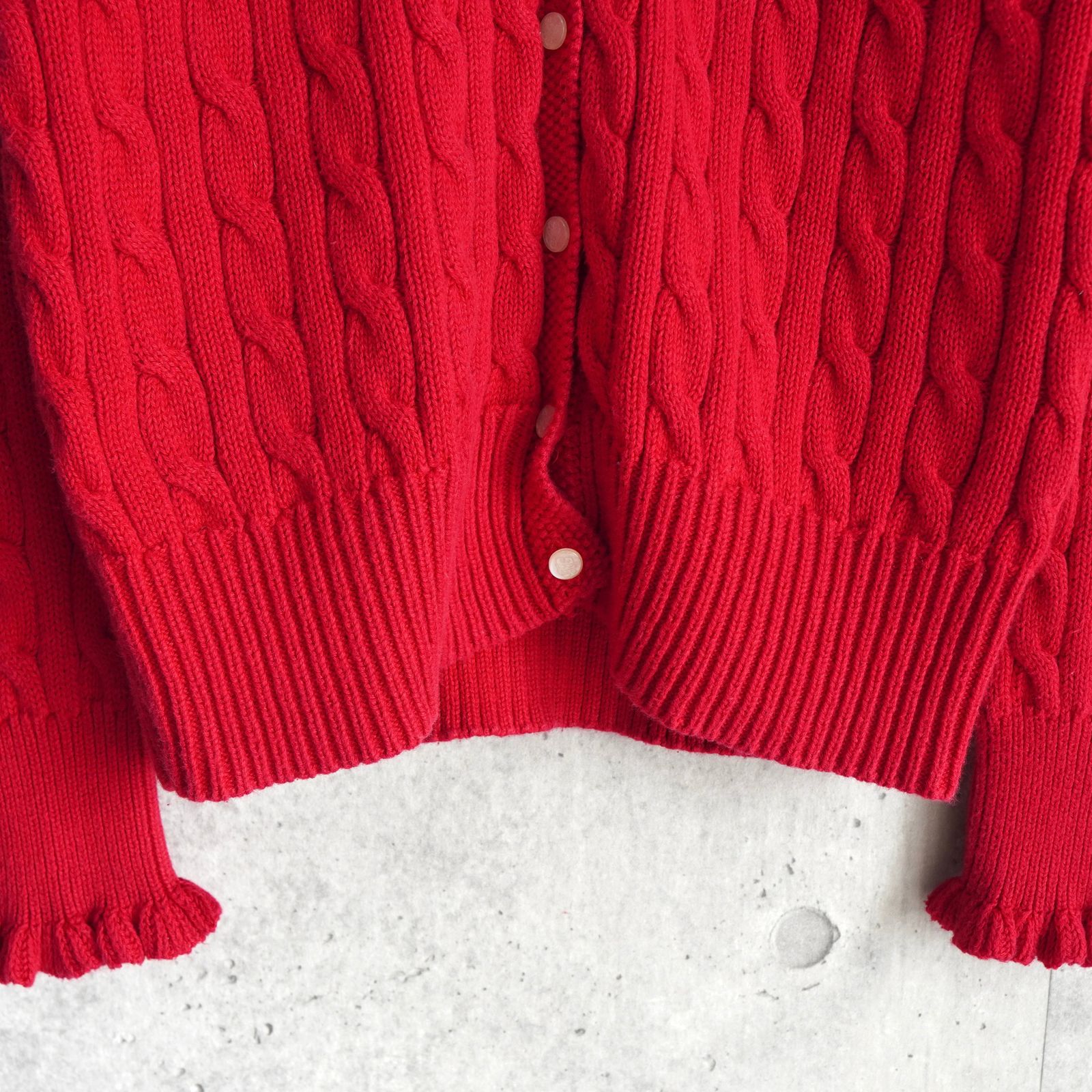 ポロ ラルフローレン フリル ケーブル編み コットン ニット カーディガン レッド レディース