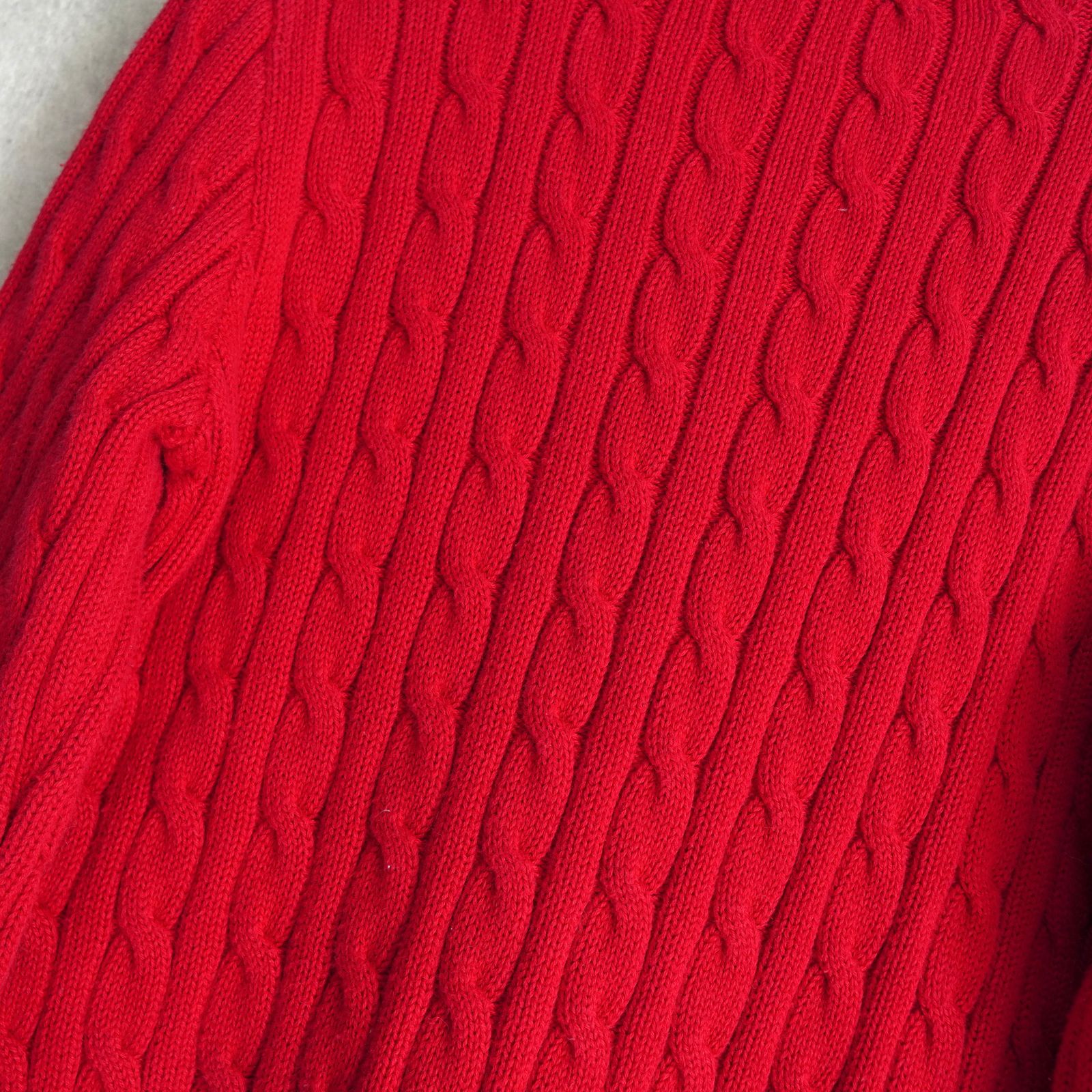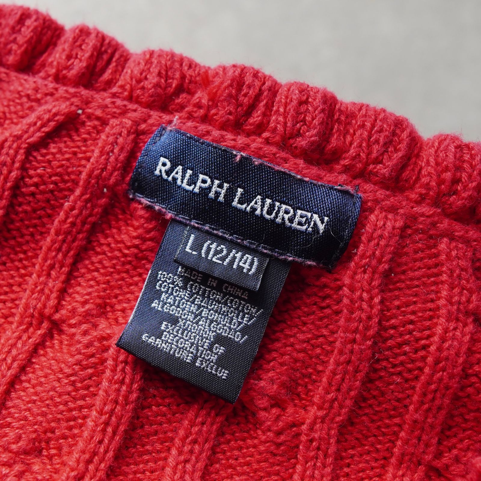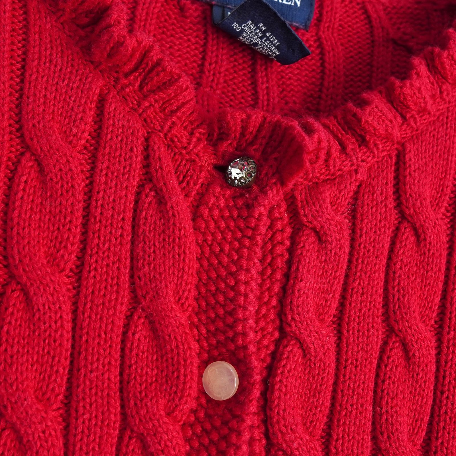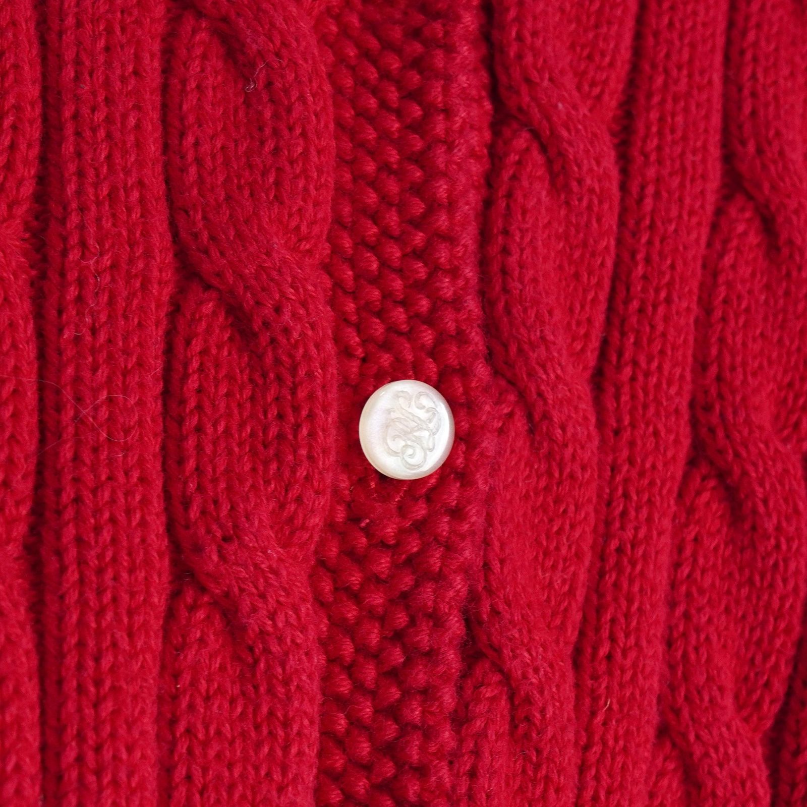 ポロ ラルフローレン フリル ケーブル編み コットン ニット カーディガン レッド レディース