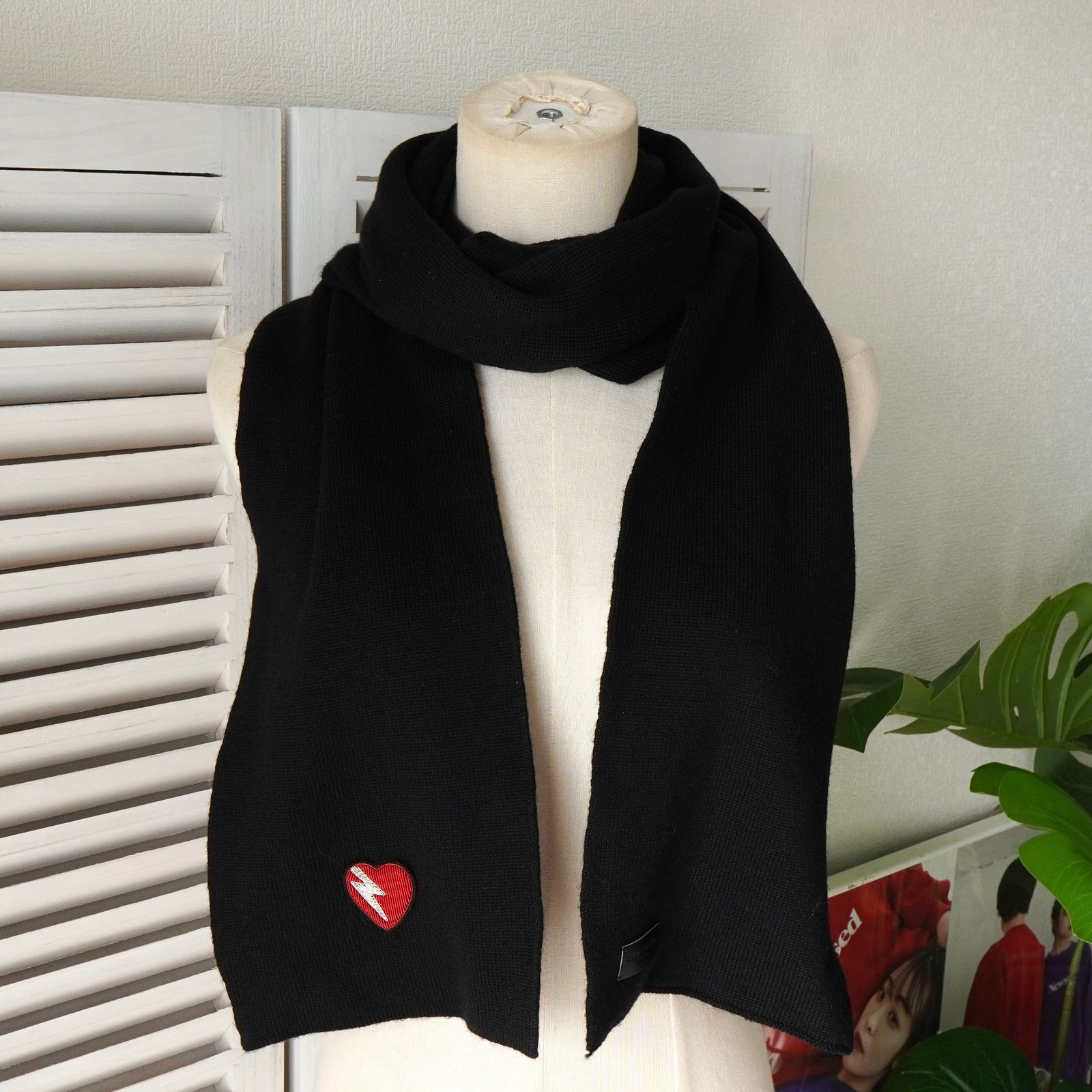 サンローラン ハート ウール マフラー ブラック