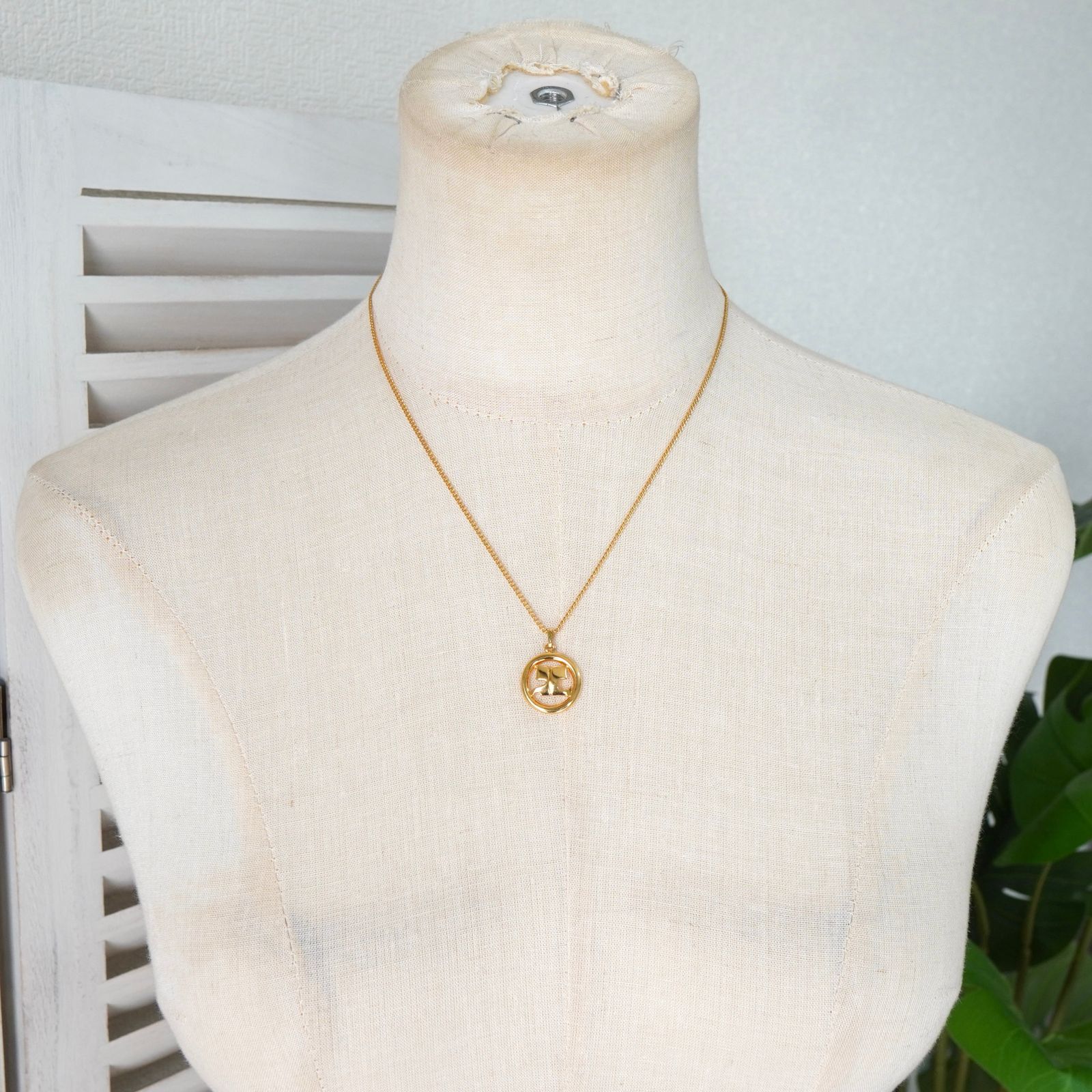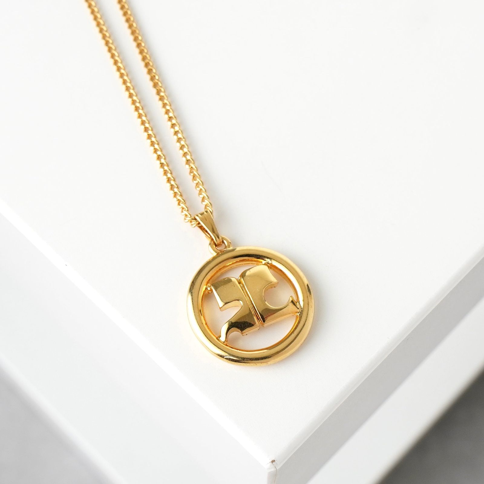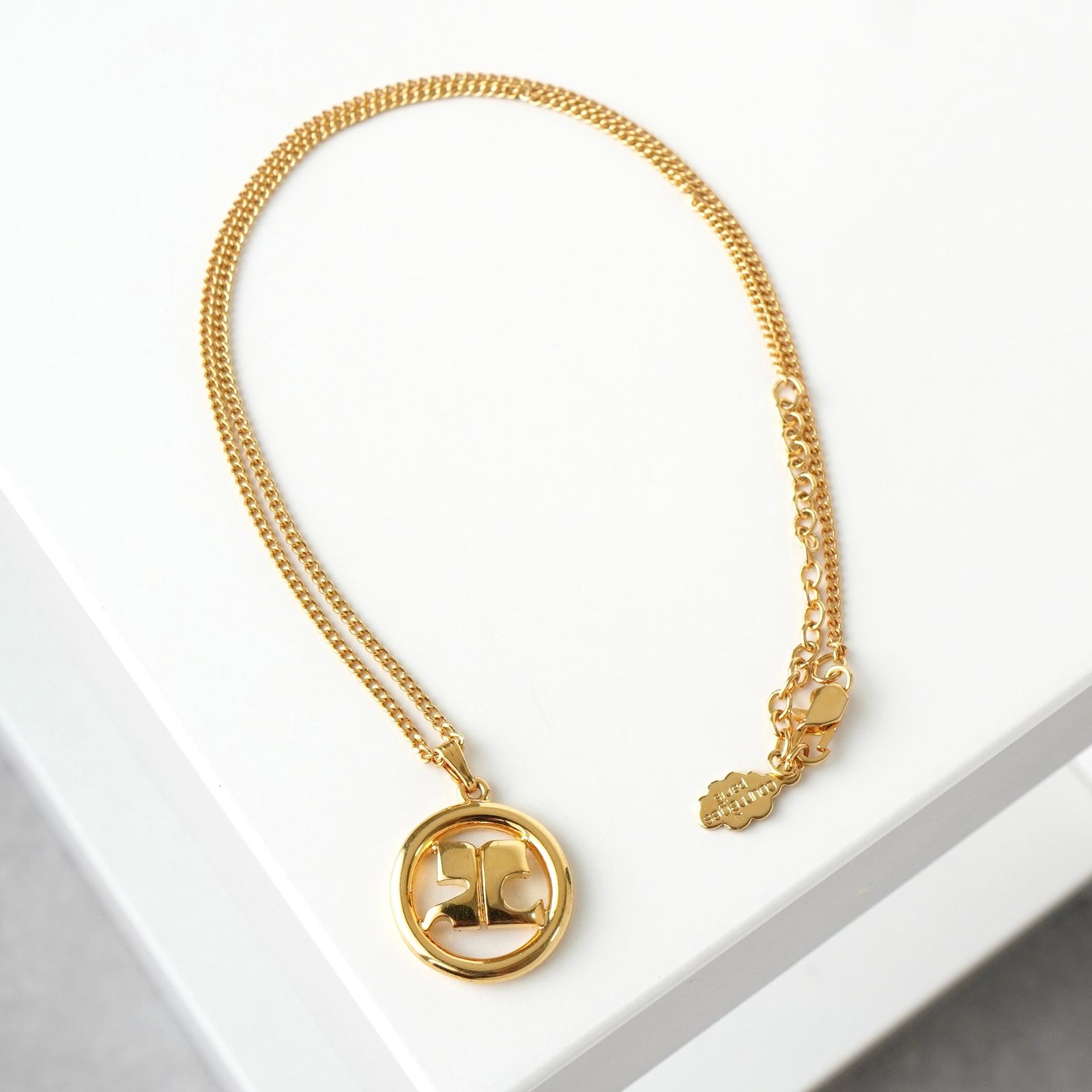 クレージュ ヴィンテージ ラウンド ロゴ ネックレス GP ゴールド