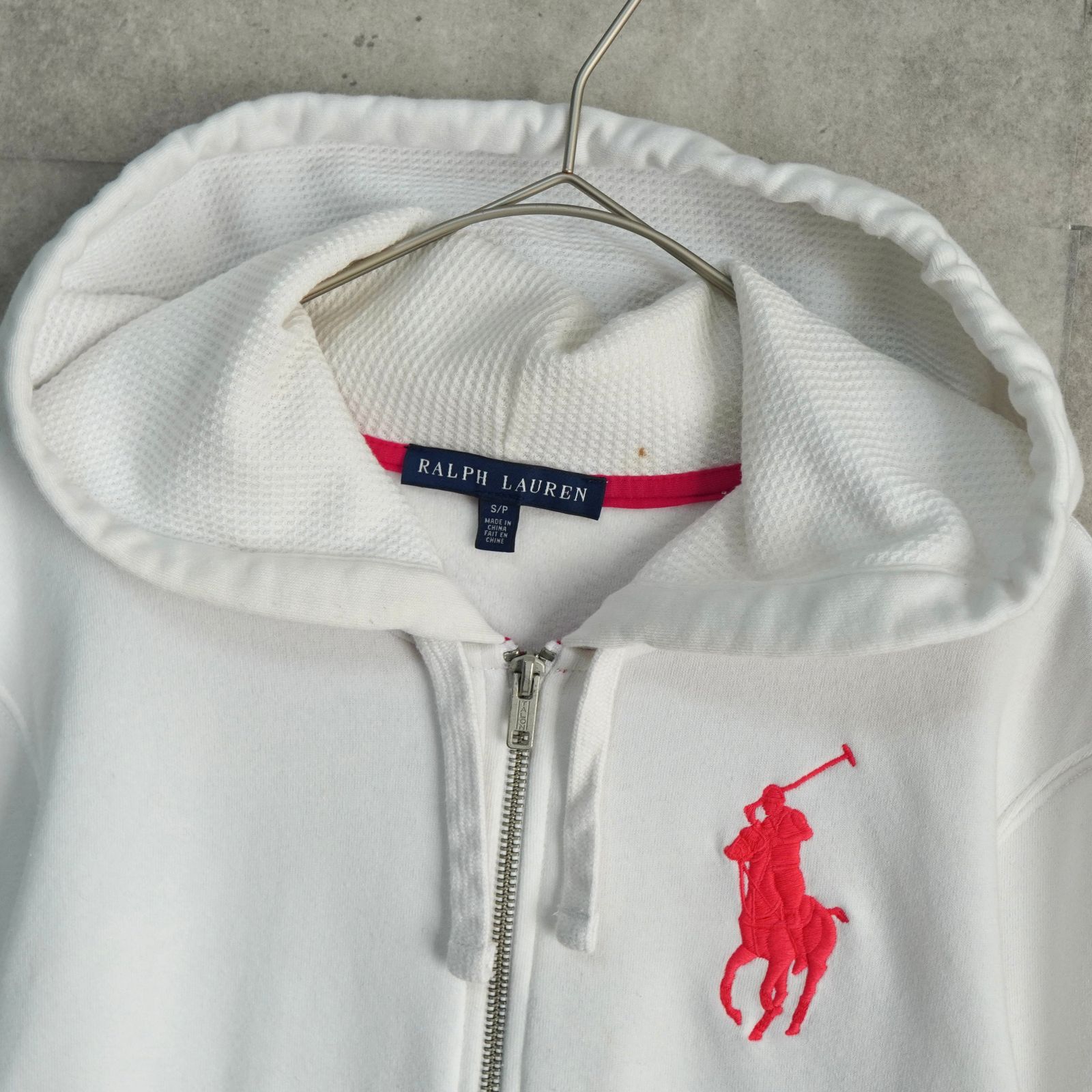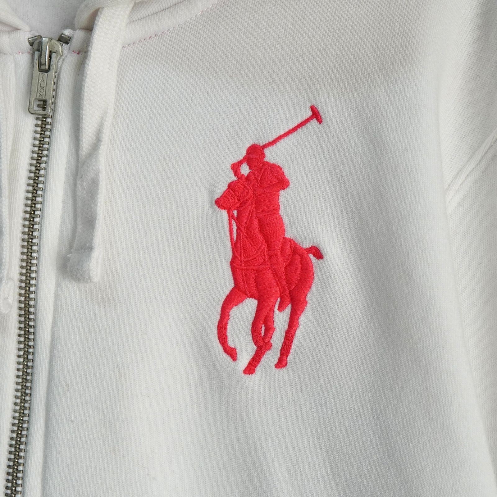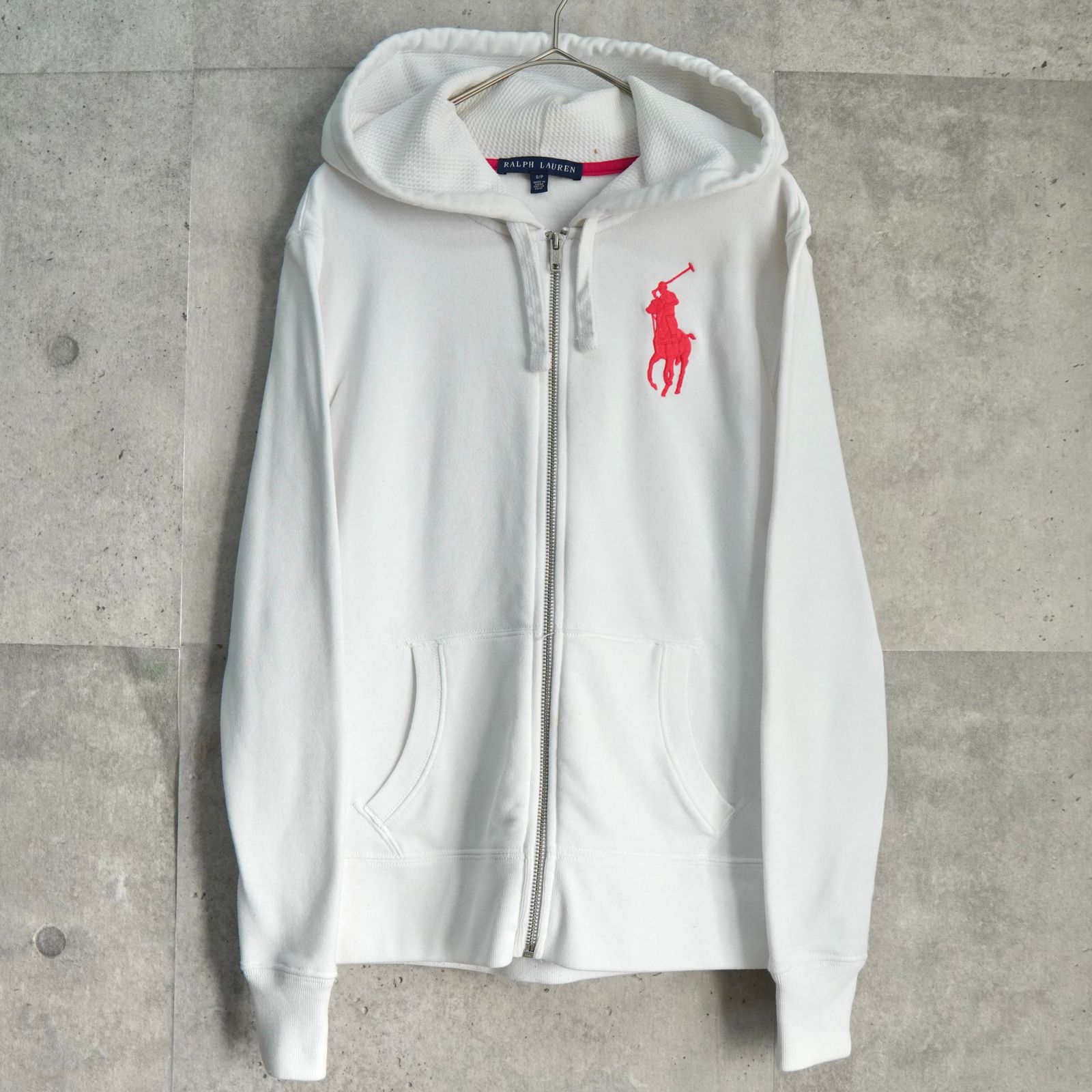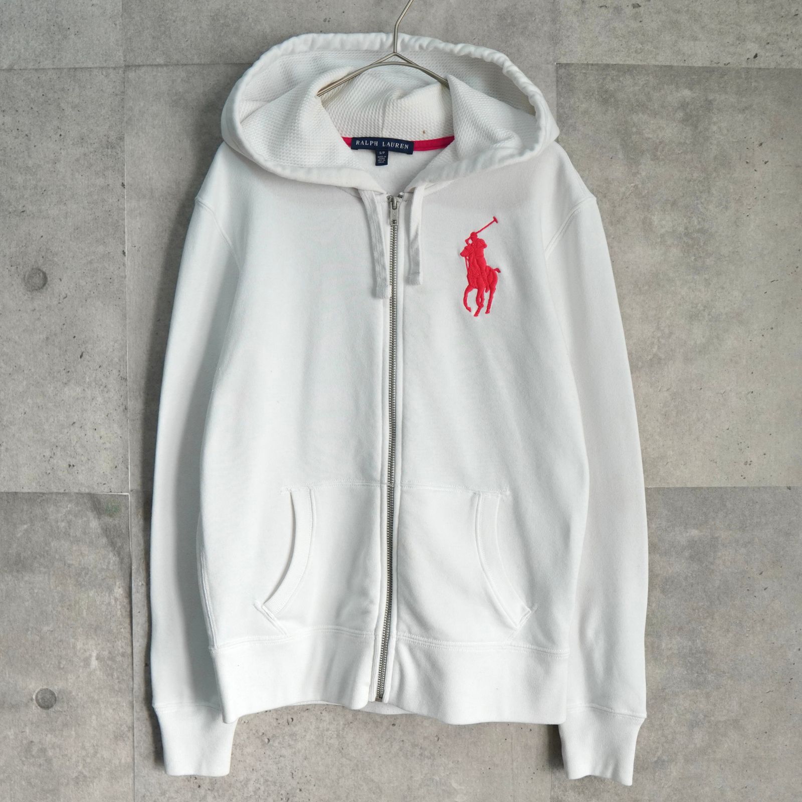 ポロ ラルフローレン ビッグポニーロゴ フルジップ パーカー ホワイト レディース