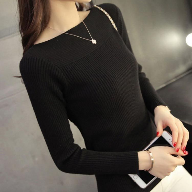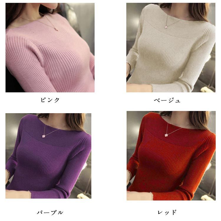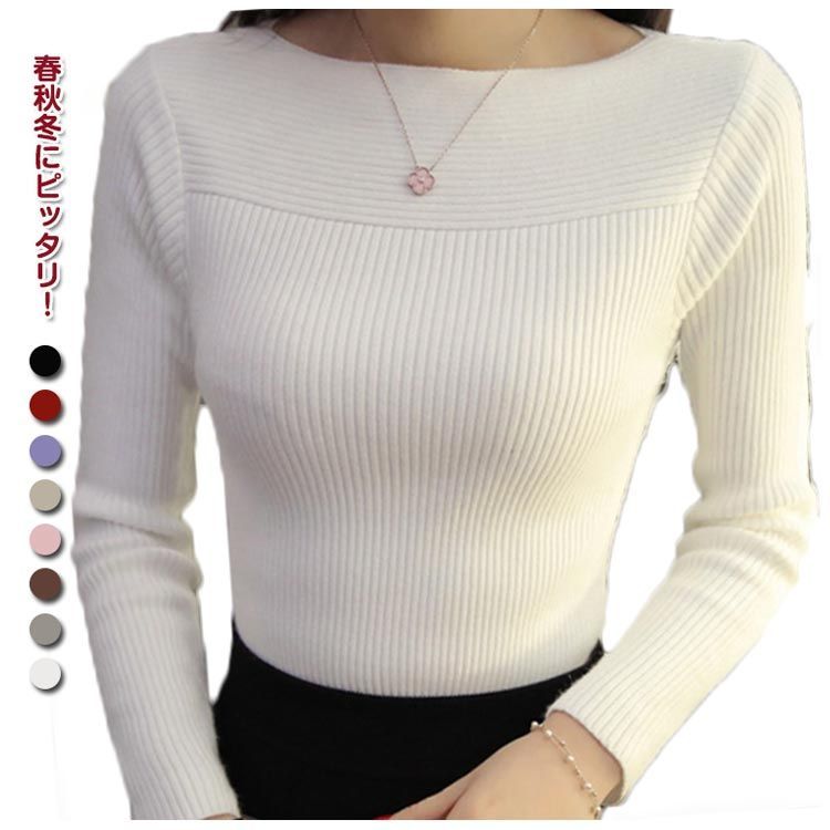 デコルテラインを美しく見せる、女性らしいボートネック。