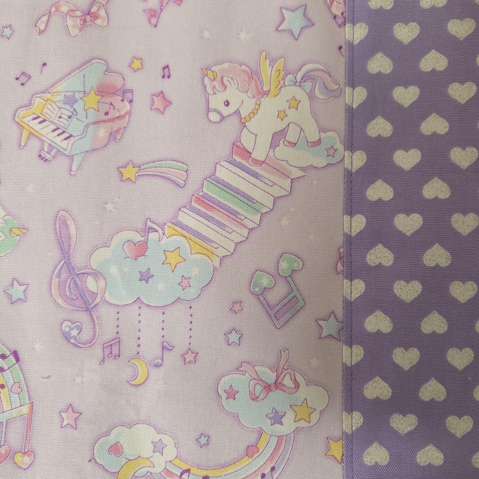 同柄でお弁当袋、コップ袋、レッスンバッグ上靴入れ、体操服入れを出品しています。