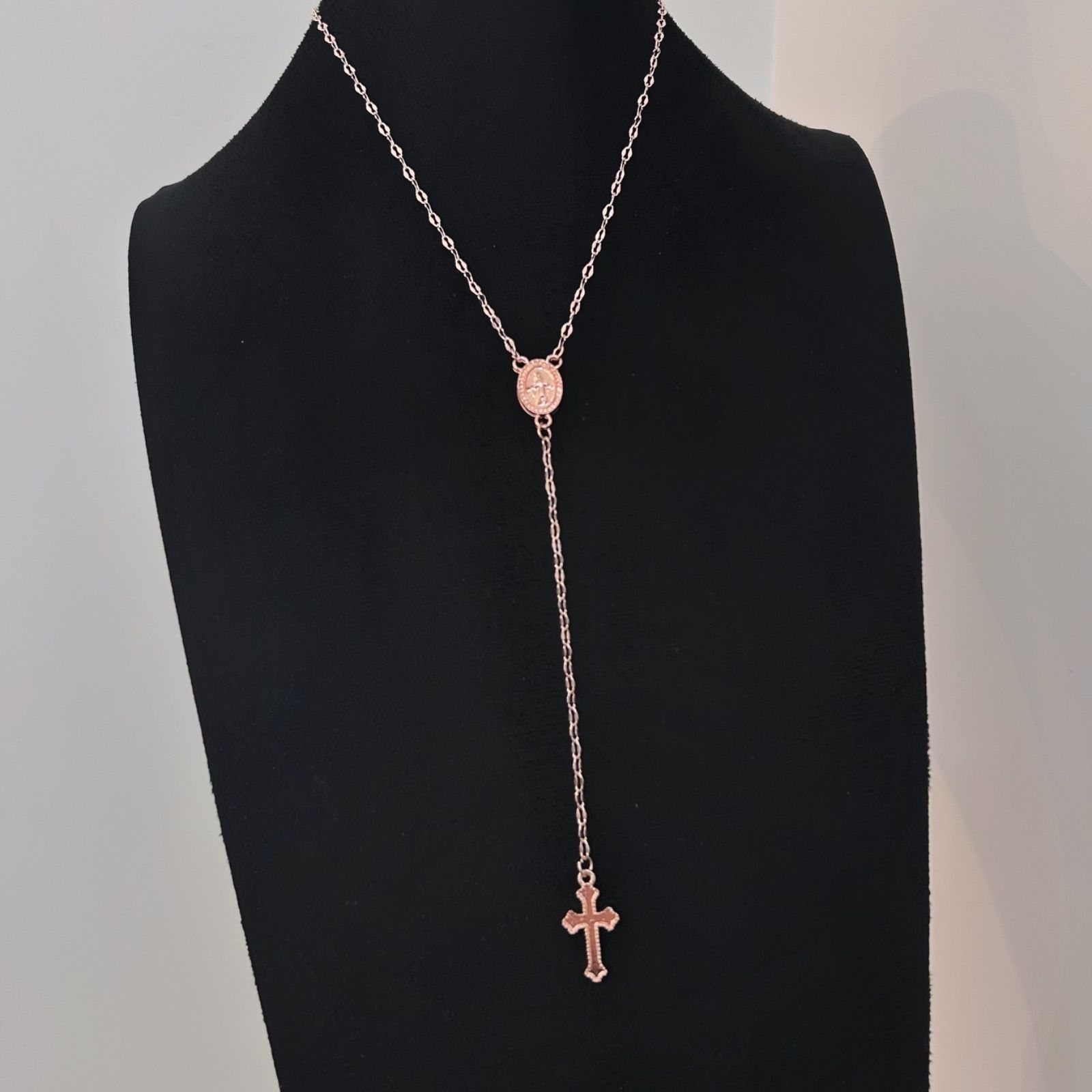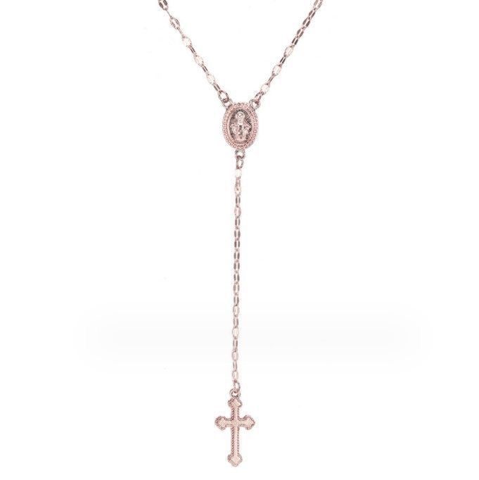 クロス 十字架 メダイ 聖母マリア Y字 ネックレス ローズゴールド シンプル