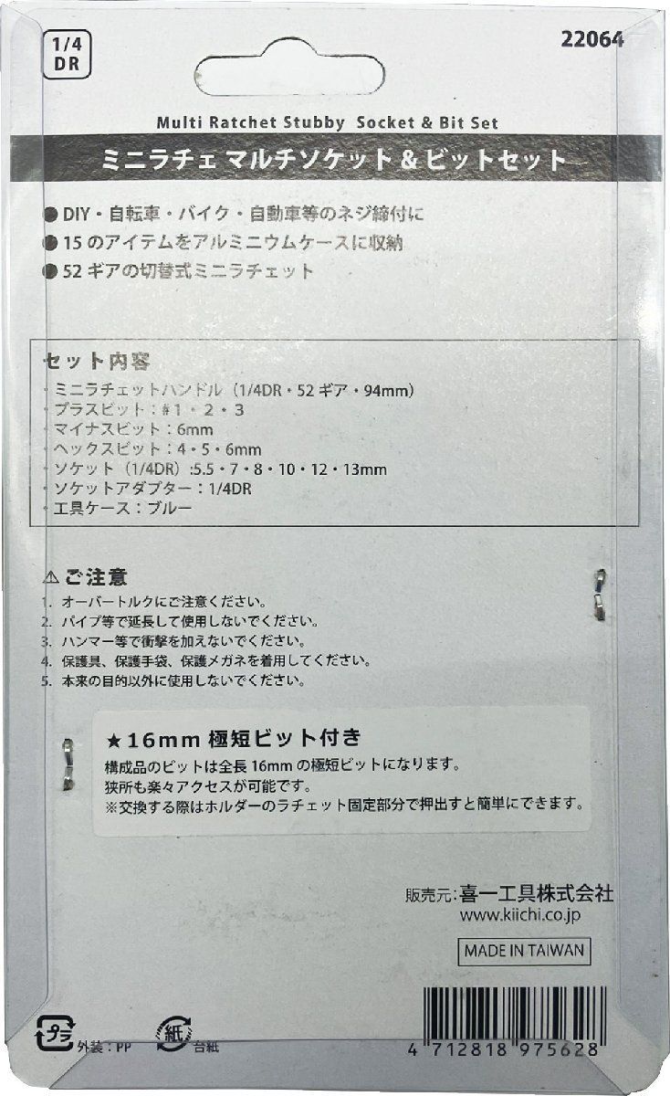 商品名:22064 15PC ミニラチェマルチソケット&ビットセット ブルー