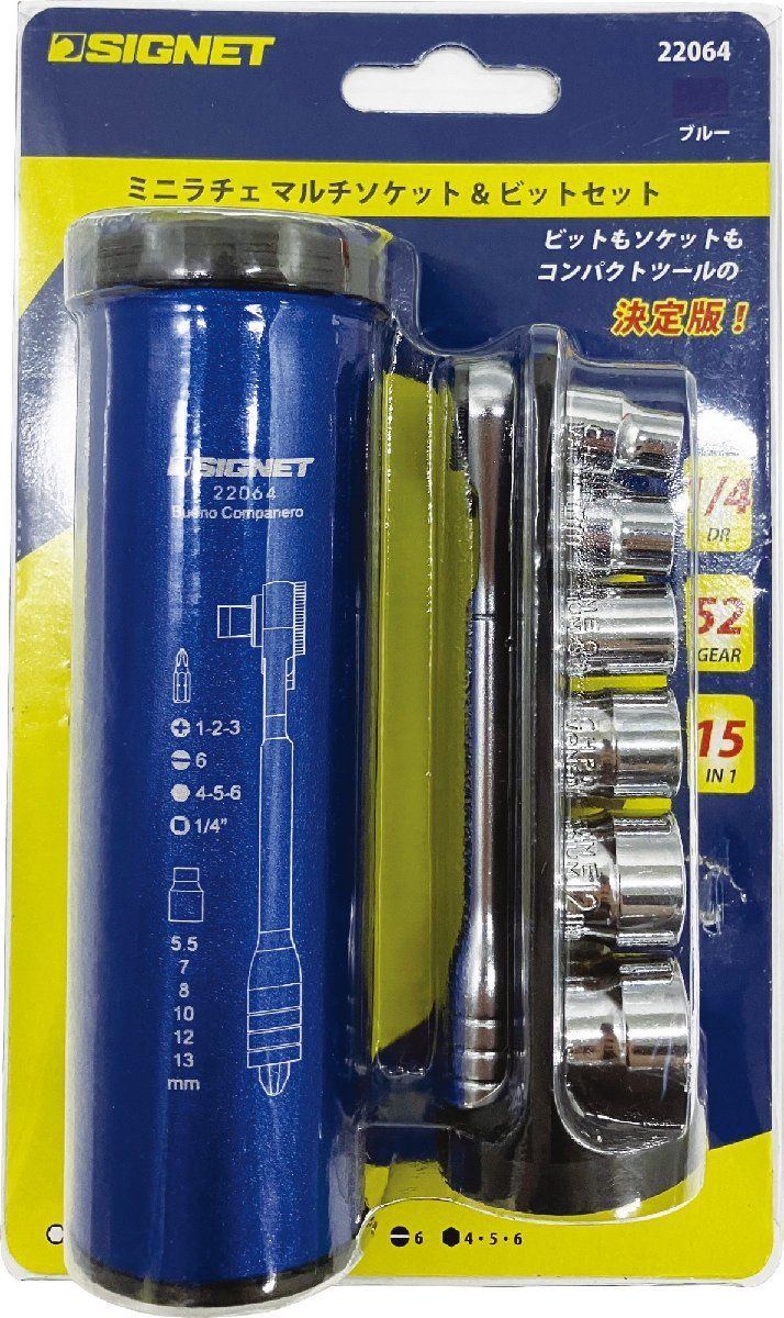シグネット SIGNET 22064 15PC ミニラチェマルチソケット&ビットセット ブルー 品番:22064新品になります。