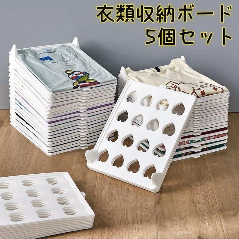 衣類収納ボード シャツ収納ボード 5個セット ハート型 洋服収納 積み重ね 仕切り 整理整頓 クローゼット シャツ折りたたみ ワイシャツ Tシャツ
