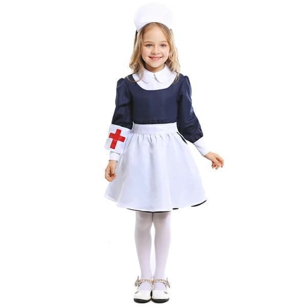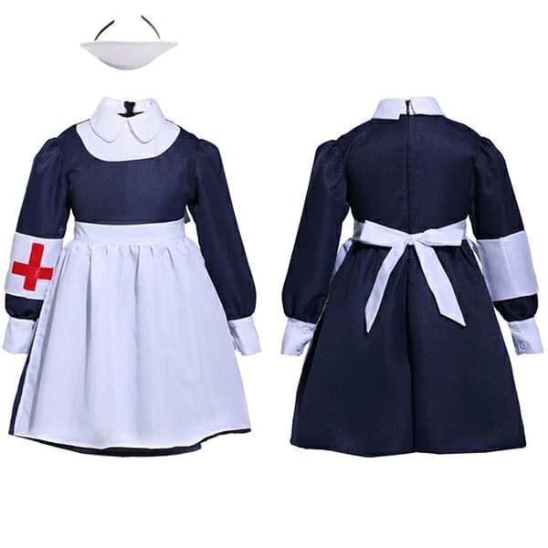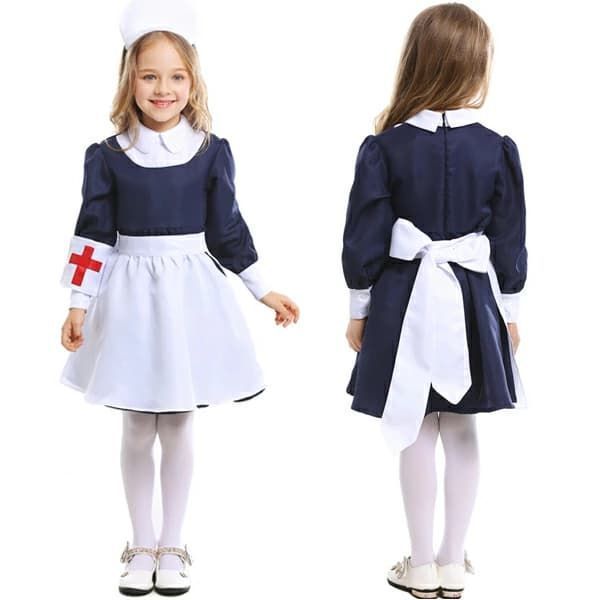 可愛いナースコスプレ!ナースキャップ風ヘアバンド+ドレス+腕章+エプロン